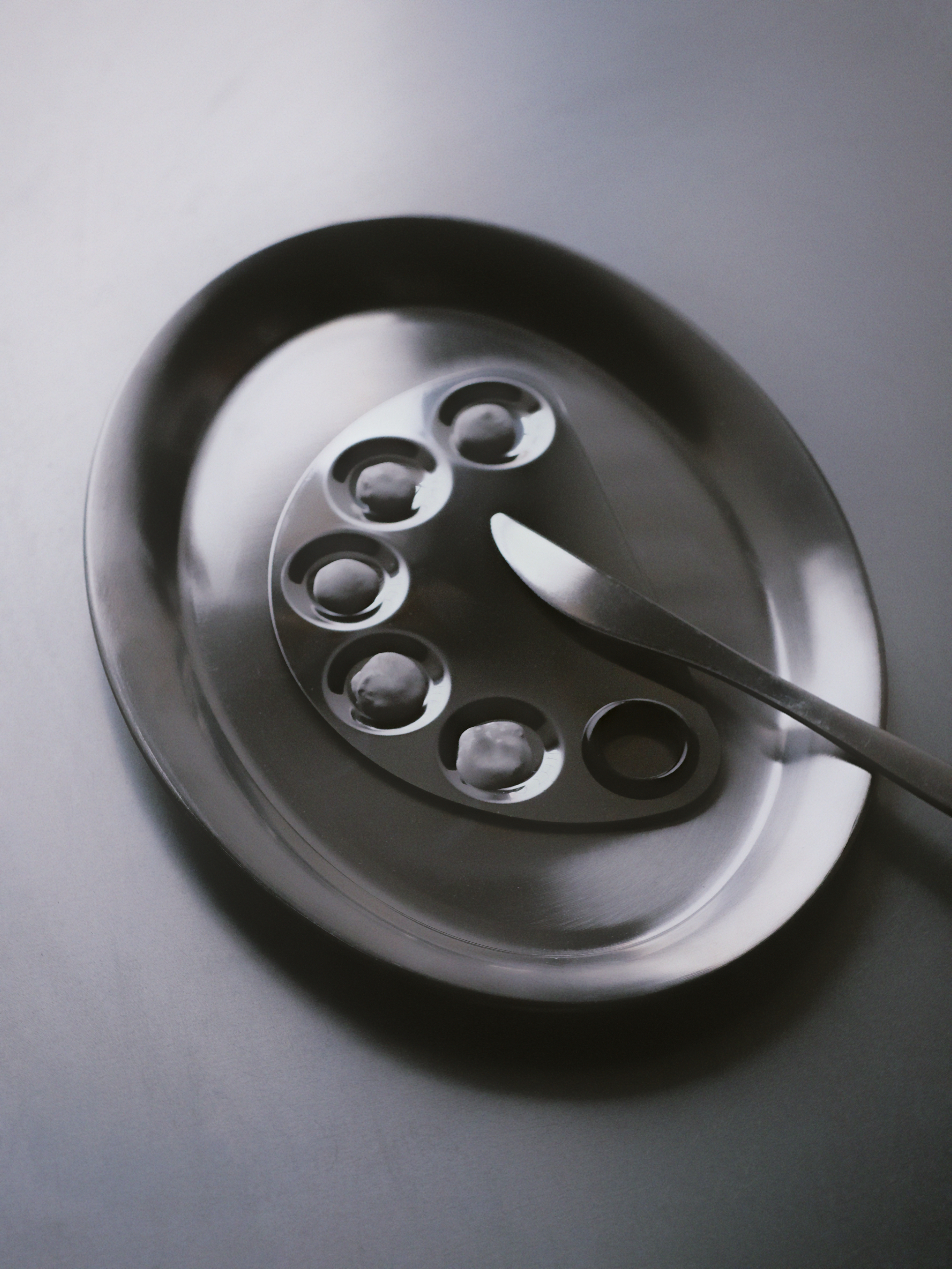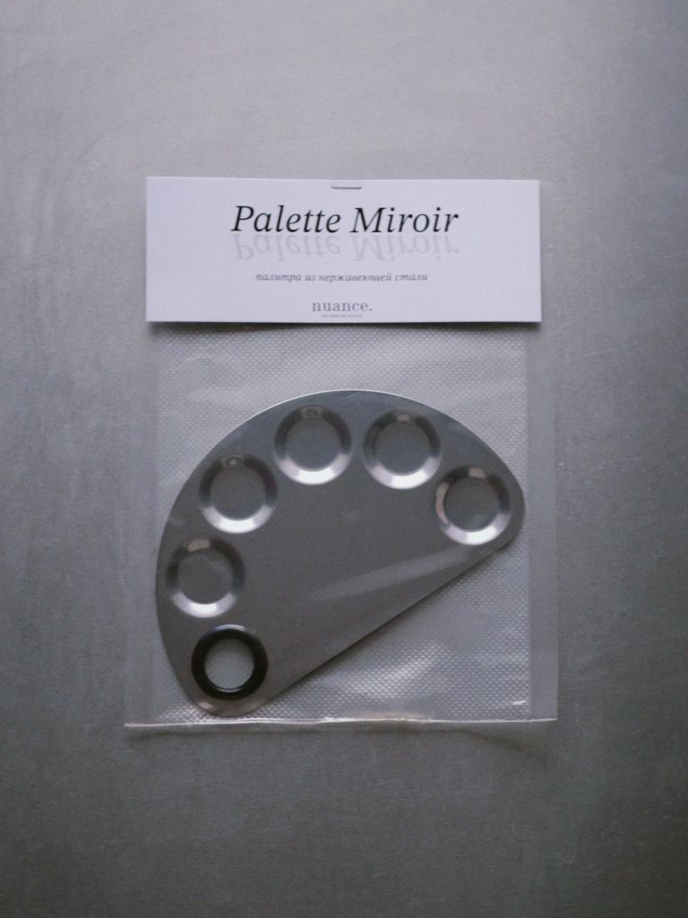 Стильная палитра из нержавеющей стали. Выполнена в виде полумесяца с углублениями для краски и отверстием для хвата. Размер: 15х9 см