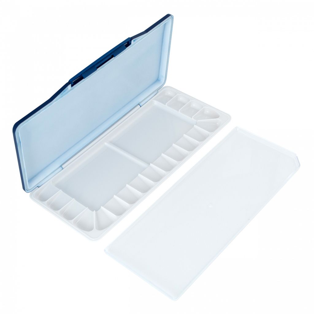 Пластиковая палитра «Белые Ночи» — это отличный инструмент для работы дома и на пленэрах. Палитра оснащена крышкой с силиконовой вставкой для дополнительной герметичности. Палитра разделена на 18 маленьких ячеек и 2 больших ячейки для смешивания красок. В комплекте также есть пластиковый вкладыш-палитра для смешивания. Несмотря на наличие крышки с силиконовой вставкой, рекомендуем вам не переворачивать палитру с красками, хранить и транспортировать её в горизонтальном положении.