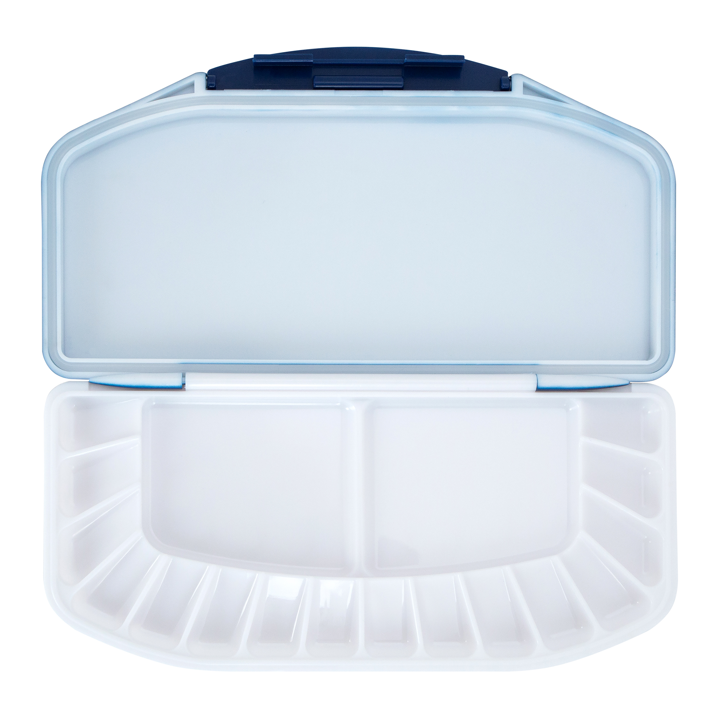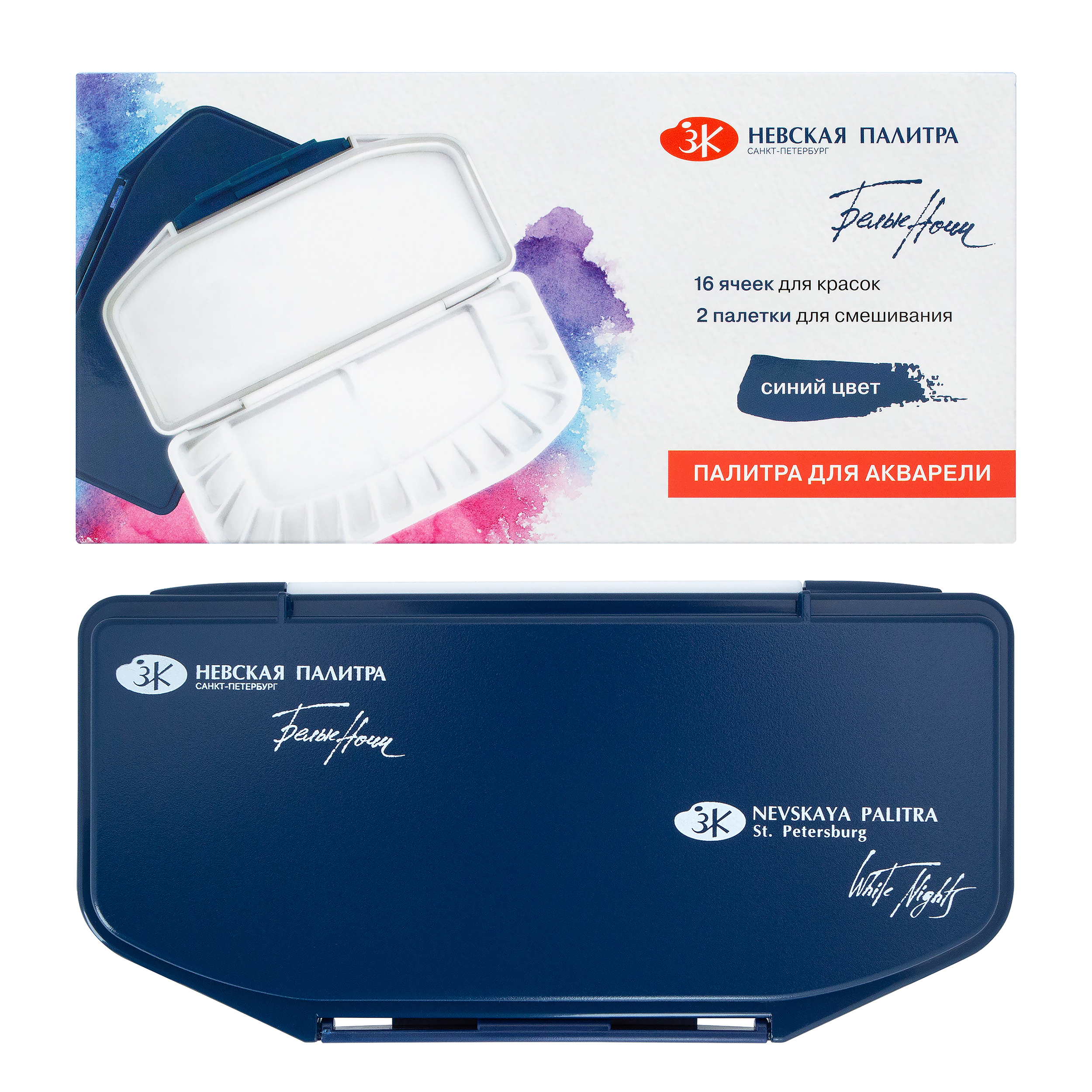 Пластиковая палитра «Белые Ночи» — это отличный инструмент для работы дома и на пленэрах. Палитра оснащена крышкой с силиконовой вставкой для дополнительной герметичности. Палитра разделена на 16 маленьких ячеек и 2 больших ячейки для смешивания красок. Несмотря на наличие крышки с силиконовой вставкой, рекомендуем вам не переворачивать палитру с красками, хранить и транспортировать её в горизонтальном положении.
