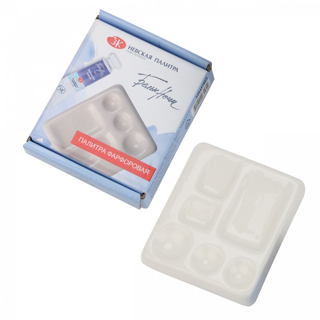 Палитра состоит из 6 ячеек, одна из которых увеличенных размеров, предназначена для смешивания цветов. Рекомендуется к использованию в работе акварельными, гуашевыми и акриловыми красками. Палитра легко моется и не впитывает пигменты краски. Размер палитры 7,5х 8,5х1,4 см.