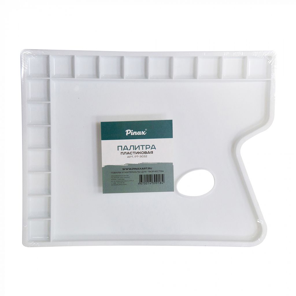 Пластиковая палитра Pinax прямоугольной формы, с небольшими углублениями для краски различных оттенков, что дает художнику возможность сохранять смешанные цвета и не допускать перерасхода краски. Пластиковая палитра считается универсальной и подходит для работы с различными видами красок.
