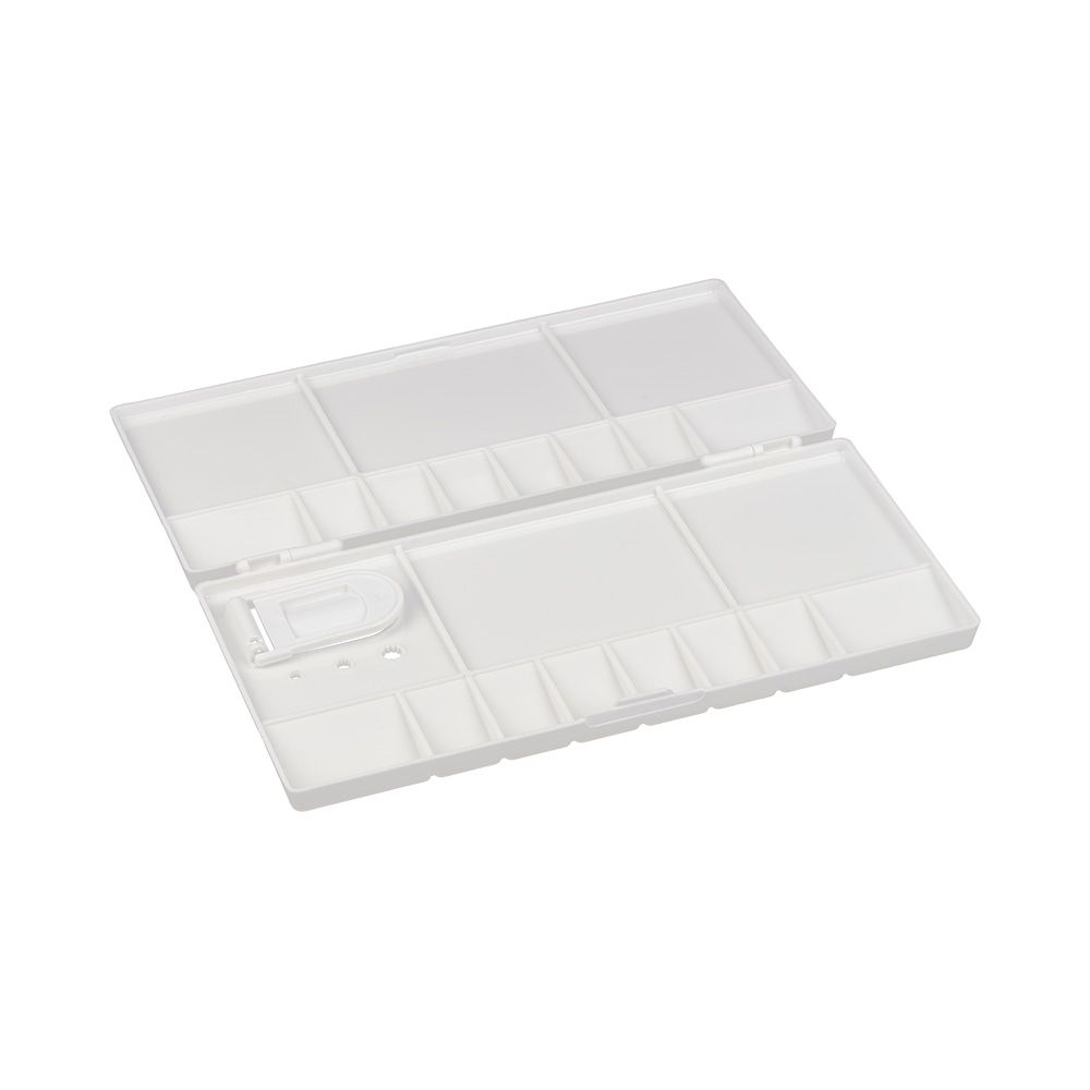 Удобные пластиковые палитры в виде пенала предназначены для смешивания акварельных красок. В палитрах предусмотрены ячейки для наполнения красок, а также несколько отсеков для их смешивания. В палитрах предусмотрены отверстия для пальца для наилучшего удерживания в процессе работы.