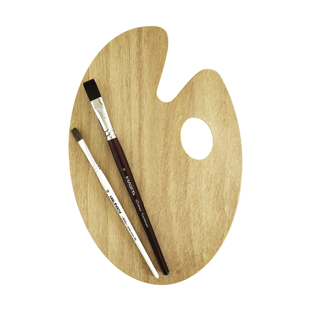 Деревянная палитра «Малевичъ» классической овальной формы предназначена для смешивания гуашевых, акриловых и масляных красок. Благодаря анатомически выверенным отверстиям для пальцев палитра удобно ложится в руку, делая процесс живописи лёгким и комфортным, а её гладко отполированная поверхность при необходимости легко очищается от лишней краски с помощью ветоши и шпателя.