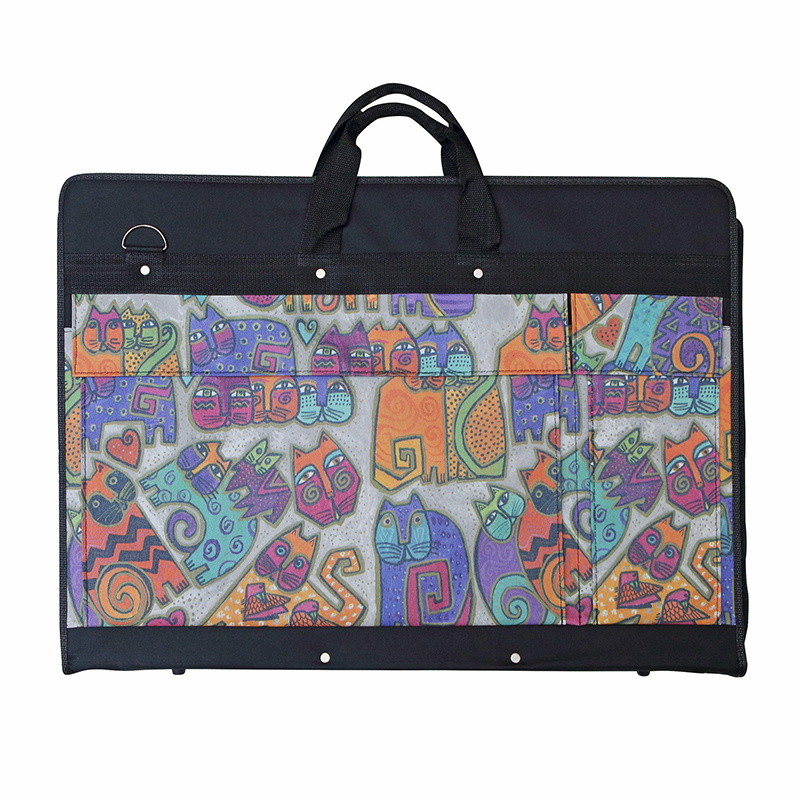 Папка "Художник" формата А2. Размер: 650х470х60 мм. Цвет: "Кошки". Дерзкий и яркий рисунок этого материала сразу бросается в глаза и всегда пользуется большим успехом. С такой папкой Вы всегда будете в центре внимания. С внешней стороны папки два объемных кармана - узкий под кисти (150х310 мм.) и широкий (490х310 мм.) с клапаном, закрывающихся на ленту "велькро". Внутри съемный блок-разделитель для листов. Папка оснащена ручками и регулируемым ремнем для переноски. По дну жесткая планка шириной 6 см.