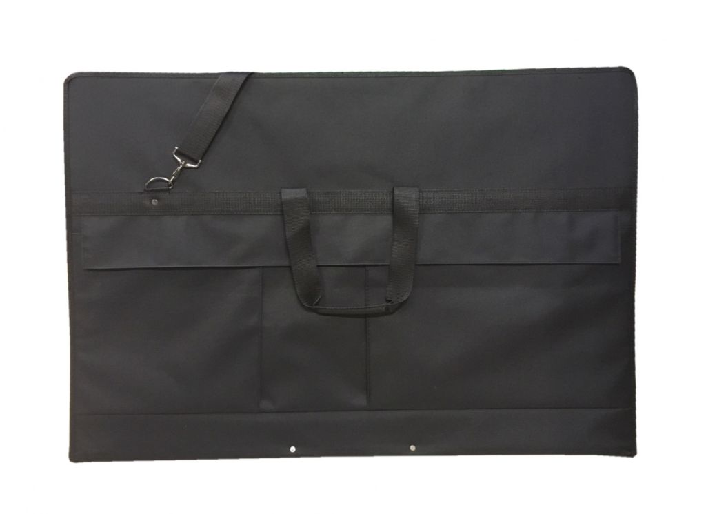 Папка на молнии предназначена для хранения и переноски работ и документов формата А1 или меньше. По периметру папка закрывается на широкую застежку "молнию", создающую дополнительный объем, с двумя большими "бегунками" для удобства открывания. Снабжена ручками и регулируемым ремнем для переноски. Три внешних кармана для переноски мелочей. По дну жесткая планка шириной 4 см.