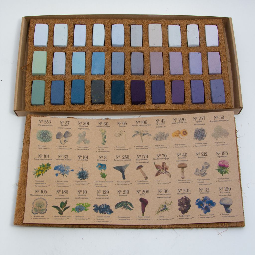В наборе 30 цветов мягкой сухой пастели премиального качества. Каждый мелок пастели создан вручную под чутким контролем на каждом этапе производства, что гарантирует высокое качество и насыщенность каждого оттенка в наборе. Пастель отличается исключительной мягкостью нанесения, легко и равномерно ложится на поверхность бумаги, хорошо растушёвывается и смешивается между собой, позволяя создавать новые оттенки и плавные градиенты. Для наилучшей сохранности готовой работы рекомендуется использовать специальную бумагу с выраженной фактурой и лак-фиксатив, который не позволит пастели осыпаться. При изготовлении пастели используются только нетоксичные экологически чистые пигменты и натуральные компоненты, что крайне важно для такого тактильного материала, большинство цветов пастели близкие к природным оттенкам и идеально подходят для написания пейзажей и пленэрных работ. Размер мелка: 3.5х2х1 см. Цвета в наборе: №253 Цвет воды *** №57 Серая белка *** №201 Серое серебро *** №60 Серо-зеленый светлый * №65 Пепельный *** №106 Пепельно-серый *** №42 Серый шелк *** №220 Серый кварц ** №257 Галечный серый *** №59 Серое стекло ** №101 Оливковый припыленный *** №63 Бледно-серый (Хамелеон) ** №161 Серый цемент *** №8 Серо-голубой холодный (Хамелеон) ** №255 Серый антрацит *** №179 Серый базальт *** №70 Тауп *** №40 Базальт светлый *** №212 Серо-сиреневый светлый *** №198 Серо-розовый *** №105 Зеленая тень *** №185 Темно-зеленый опал *** №10 Синяя вода *** №129 Асфальт мокрый (Хамелеон) *** №219 Океанская синь *** №209 Гранат черный *** №36 Пейна *** №205 Графит серый *** №32 Фиолетово-серый *** №190 Ниагара *** Максимальная светостойкость ***
