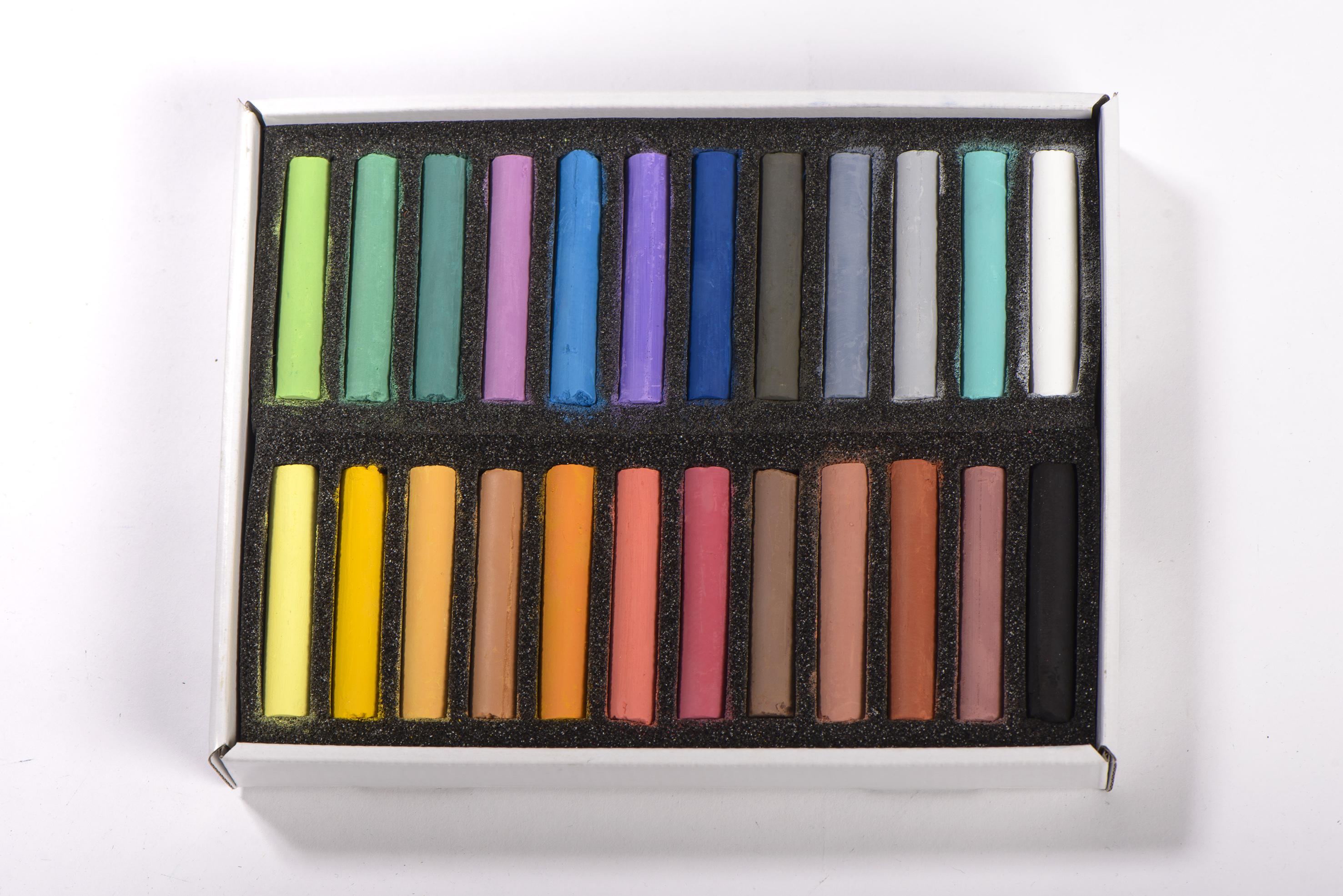 Сухая пастель от бельгийского бренда Blockx изготавливается вручную. Высокое содержание пигментов и высококачественное связующее обеспечивают яркие насыщенные цвета, превосходную укрывистость и мягкую бархатистую текстуру. Пастель может использоваться на бумаге различного типа и других поверхностях, но по-настоящему раскроет все свои лучшие свойства на специальной бумаге для пастели с ярко выраженной фактурой. Благодаря мелкому помолу пастель легко растушевывается, позволяя создавать глубокие многогранные работы, все цвета можно смешивать между собой, а также разбавлять водой. В наборе 24 мелка пастели разных цветов.