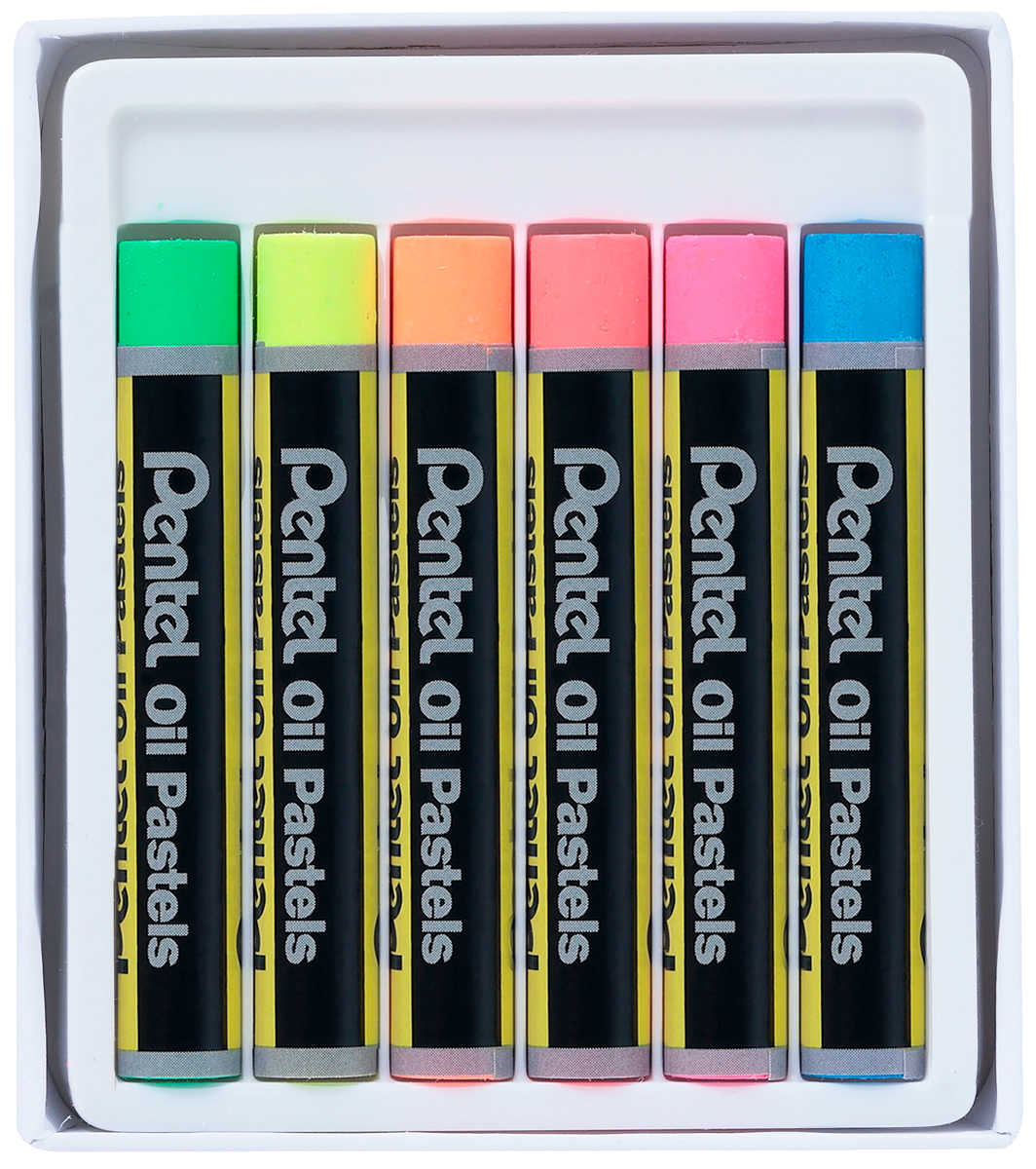 Набор масляной пастели Pentel в флуоресцентных цветах — рисунок светится в неоновых лучах. Четкие и яркие цвета, которые хорошо работают на белой и черной бумаге: синий, зеленый, желтый, оранжевый, красный и розовый. Пастель наносится гладко и легко смешивается для получения новых оттенков. Флуоресцентные цвета содержат меньше пастельных крошек (пыли). При их производстве не применяется токсичный формальдегид (бесцветное, вредное химическое вещество). Масляная пастель не имеет неприятного запаха. Каждый мелок обернут в индивидуальную бумажную оплётку.
