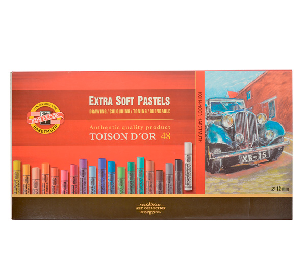 О серии: экстра мягкая пастель «Toison Dor» обладает мягкой нежной фактурой, оставляет бархатистый красочный слой. Обладает яркими и насыщенными цветами. Обладает хорошей адгезией и с лёгкостью ложится на разные типы бумаги. Цвета хорошо смешиваются между собой и легко растушевываются. Выпускается в наборах с разным количеством цветов. Производство: изготавливается компанией KOH-I-NOOR HARDTMUTH, которая является самым известным чешским производителем принадлежностей для рисования, канцелярских товаров и товаров для творчества. Компания получила название в честь алмаза «Кохинор» и была основана в 1790 году. Характеристики: обладает мягкой и однородной фактурой. Хорошо ложится на бумагу. Не крошится. Легко растушевывается. Светостойкая. Применение: для графических работ. Возможно использование совместно с другими графическими материалами.