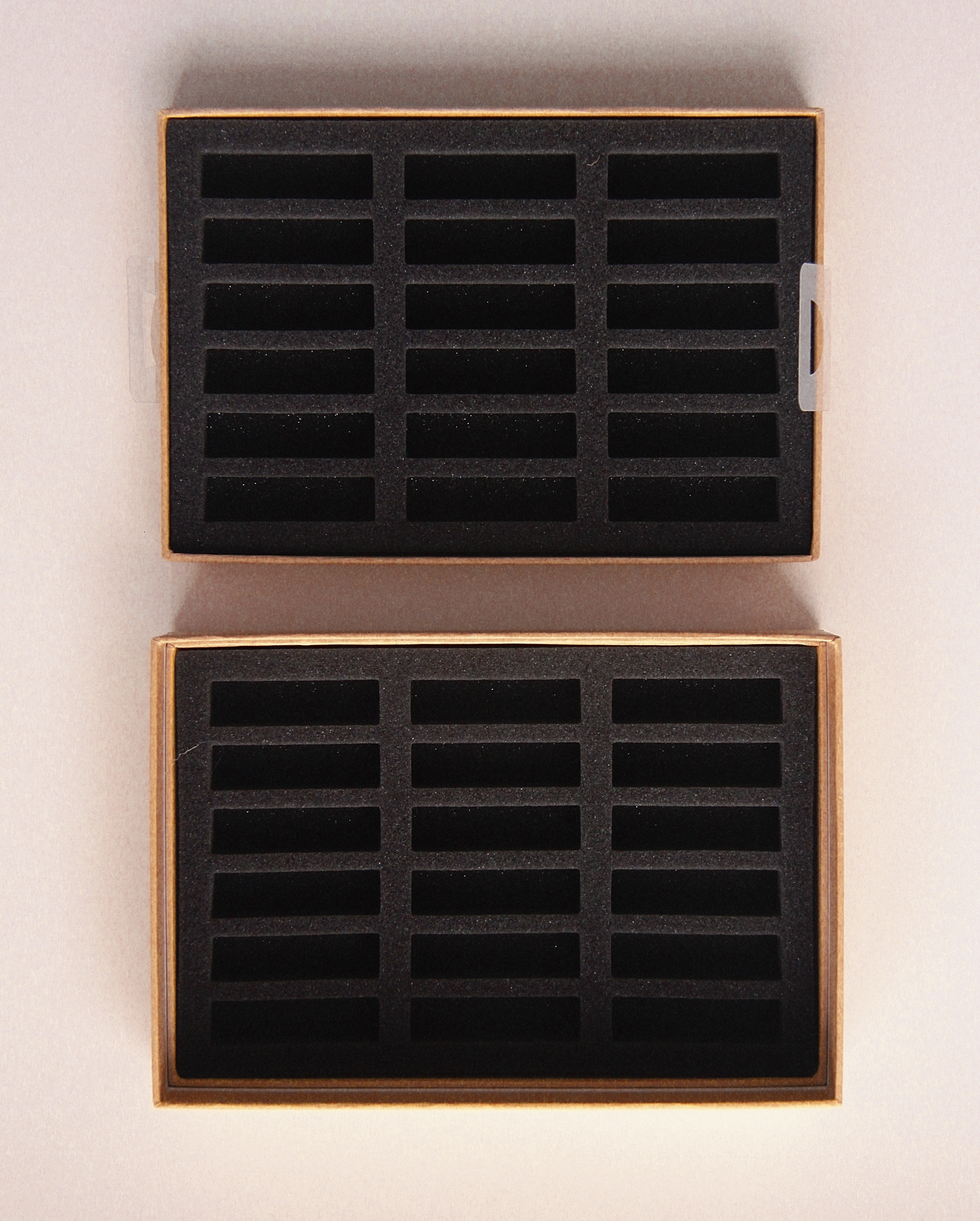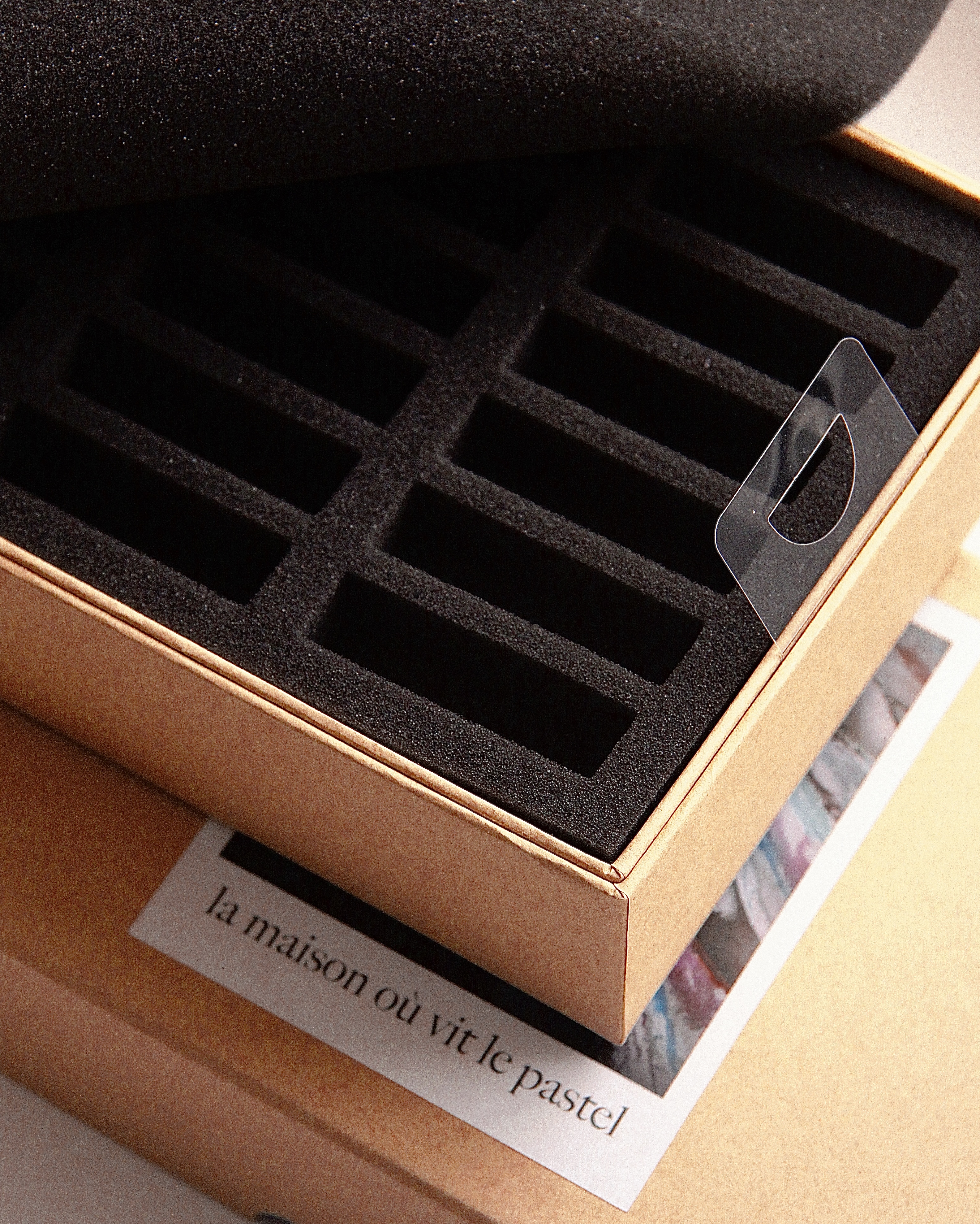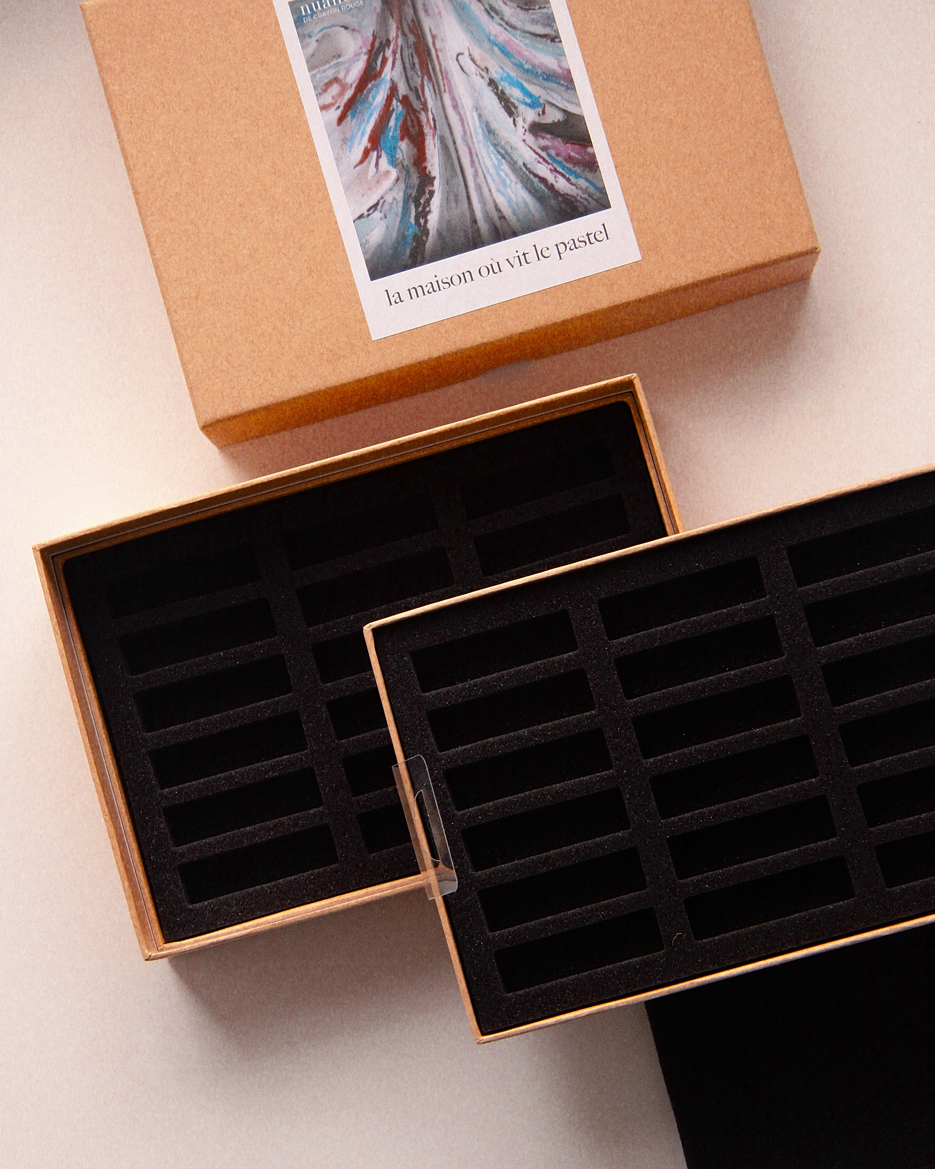 Новый дом для вашей пастели. Систематизируйте коллекцию или соберите свой собственный набор. Внутри коробки две секции ложементов с ячейками, каждая секция проложена поролоном. Для удобного извлечения секции предусмотрены специальные петельки. Корпус изготовлен из толстого и прочного картона. Коробки для пастели nuance. выпускаются вместимостью 36, 72 или 120 мелков. Размер: длина 22 см, ширина 15.2 см, высота 5.5 см.