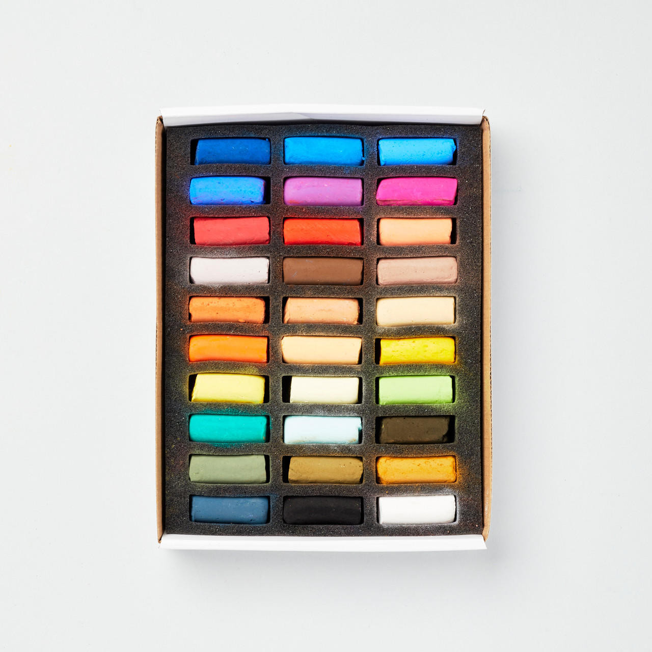 О серии: "A L’ECU" насчитывает 525 оттенков, это самая большая цветовая гамма пастели. Мелок 64 мм в длину и 13 мм диаметром в индивидуальной оболочке. Переход от тона к тону происходит очень плавно. Высокое качество пастели заключается в идеальном балансе между натуральным связующим и чистым пигментом мелкого помола. Пигмент очень интенсивный, не нужно прикладывать усилия, даже слегка коснувшись бумаги получается насыщенный глубокий цвет. Пастель изготавливают вручную, чтобы предотвратить хрупкость пастель не прессуется, а высыхает на открытом воздухе в специальных формах. Комплектация набора: набор включает в себя 30 коротких мелков (1/2 от классического мелка) пастели различных цветовых оттенков. Набор упакован в картонную коробку. Производство: изготавливается французской компанией «Sennelier». Начало ее заложил Гюстав Сеннель? (Gustave Sennelier) в 1887 году, когда стал задумываться о собственном производстве высококачественных красок и выкупил для себя художественный магазин. На сегодняшний день компания производит все виды красок для творчества.
