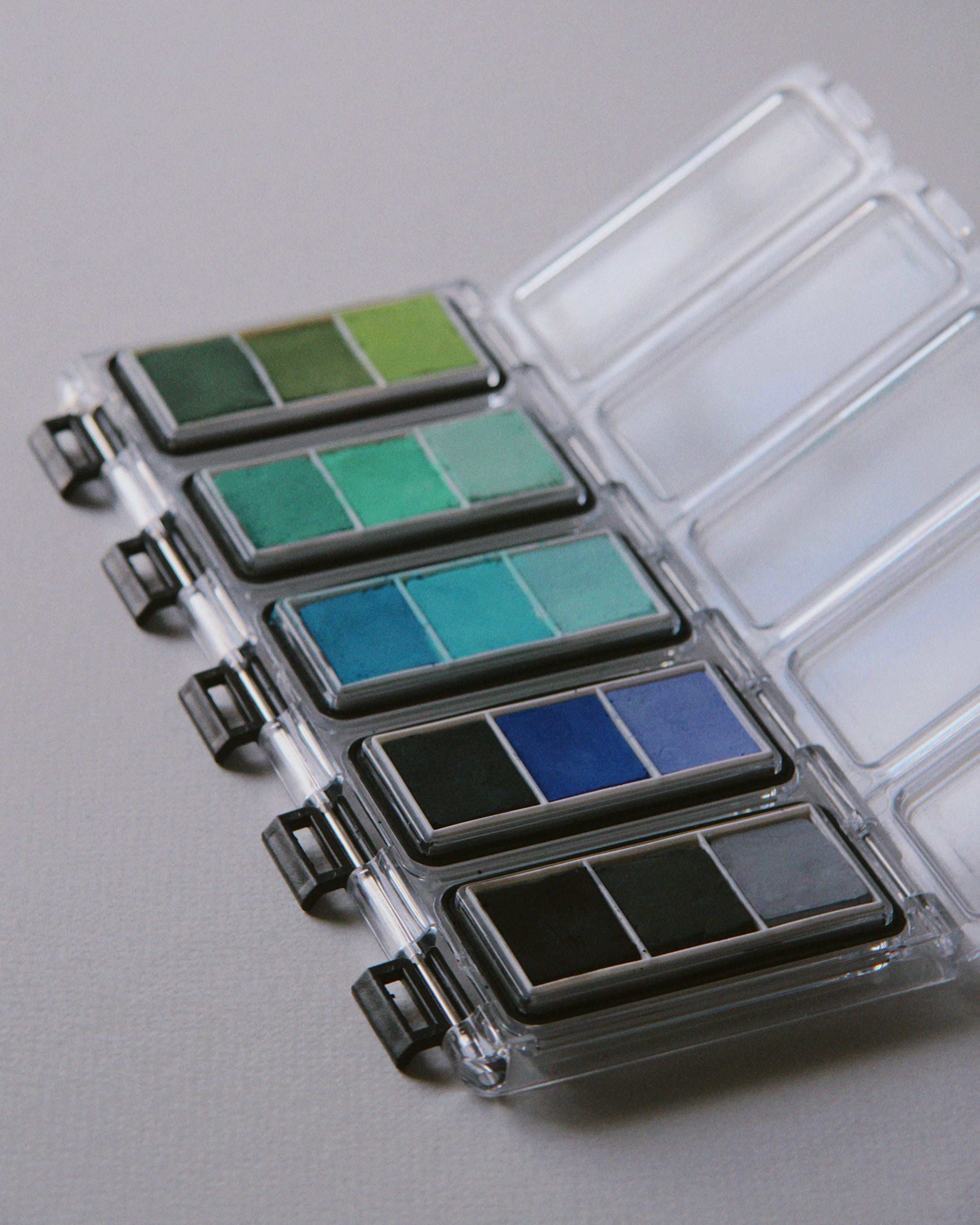 Прессованная сухая микс-медиа пастель Dualit? подходит для сухого и влажного нанесения. Название Dualit? отражает ее двойственную природу: наносите ее в сухом виде специальным мастихином для пастели или с помощью кисти, влажных спонжей — для получения насыщенных оттенков. В кейсе пятнадцать оттенков — по три в каждой секции. Секции открываются по отдельности и фиксируются механизмом-защелкой. Дополнительно защищены силиконовой герметичной прокладкой. В серию вошли три палитры: Палитра Le Silence / тишина состоит из мягких и деликатных пастельных оттенков. Она идеальна для передачи нежных, фантазийных сюжетов, предзакатной дымки, цветов. В набор вошли как теплые, так и холодные оттенки, которые позволят добиться драматичных и контрастных работ. Палитра La For?t / лес вдохновлена природными оттенками туманного леса, ботаническими сюжетами и прохладной водой рек и озер. Каждый оттенок представлен в нескольких вариантах контрастности, что позволяет добиться большей драматичности сюжета. Палитра L’Aube / рассвет вдохновлена закатным небом тропических островов. В нее вошли оттенки в основном красного спектра разной степени теплоты и холодности. Она идеальна для пейзажей с акцентом на ярком предзакатном или рассветном небе, жарком солнце или песке. Размер кейса: 9 х 20 см.