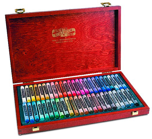 Сухие круглые пастельные мелки "Toison d'or" относятся к традиционной линейке компании Kooh-I-Noor и пользуются большой популярностью среди художников. Высокое качество компонентов, входящих в состав пастели, обеспечивается тем, что они подобраны в результате долгосрочных исследований и в строгом соответствии с технологией производства. Ключевым элементом в составе пастели является тонко помолотый карбонат кальция или мел, который в сочетании с другими примесями и связующими веществами образует базовую основу, в которую аккуратно замешиваются пигменты. Пигменты приобретаются у признанных производителей со всего мира. Их качество, стойкость и строго определенная концентрация позволяет добиться прекрасных результатов в работе и долговечности художественных произведений. Пастель данной серии является наиболее мягкой среди всех линеек производителя, благодаря чему легко наносится на бумагу различного типа, идеально растушевывается и не крошится. В данном наборе представлено 48 цветов, мелки расположены в деревянной коробке презентабельного вида, что делает набор отличным решением для подарка.