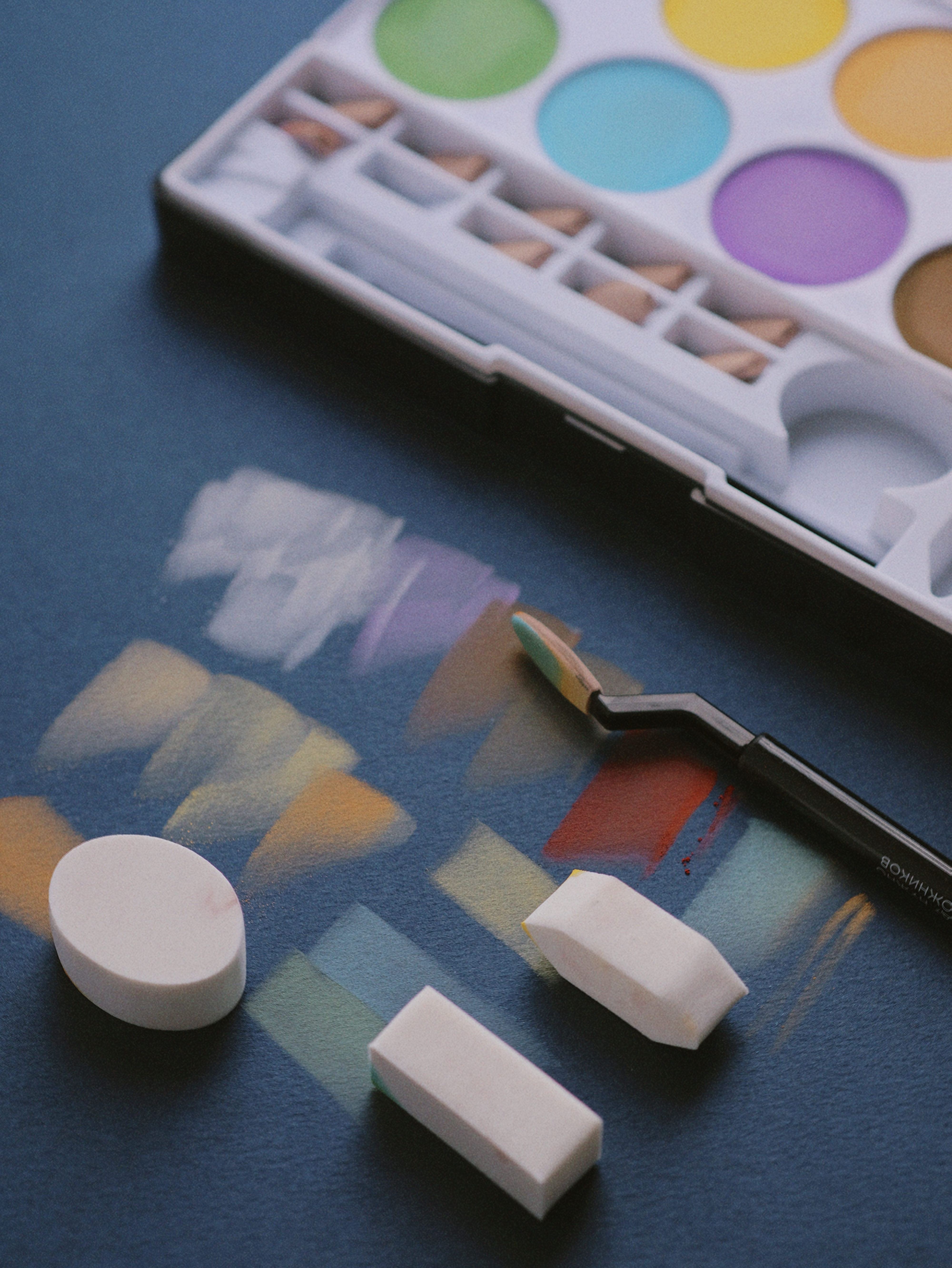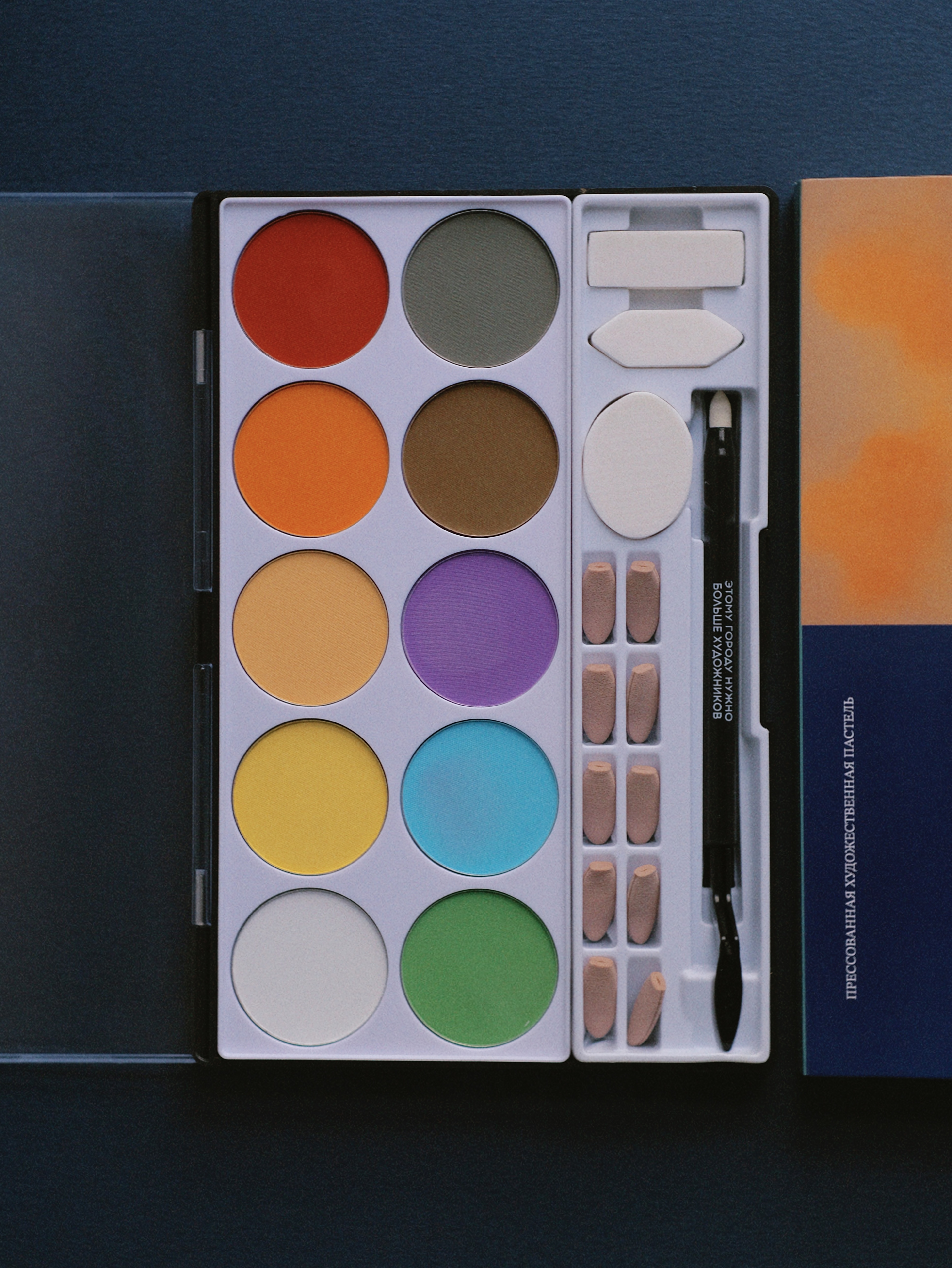 Серия наборов nuance. Tablette Chromatique — это мягкая спрессованная сухая пастель в формате палеток. Подходит для нанесения специальными мягкими аппликаторами-спонжами. В каждом наборе 10 оттенков, мастихин для пастели со сменными аппликаторами (10 шт), а также три фигурных спонжа для покрытия больших поверхностей, растушёвки и точечного нанесения ребром: овальный, прямоугольный и остроугольный. Благодаря высокой концентрации пигмента, пастель мягко ложится на поверхность, позволяя создавать плавные градиенты. Отлично смешивается и растушевывается. Применяется как в классической пастельной технике, так и для работы с холодным фарфором, фоамираном, тканью и полимерной глиной. Для чего она подойдёт: Для живописи — можно работать слоями, создавать плавные переходы и тонкие градиенты, добиваться акварельной мягкости, но при этом оставаться в сухой технике. Подмалёвков — прессованную пастель часто используют как базу: быстро перекрывают большие площади фона, потом сверху уточняют детали карандашами, пастельными мелками или краской. Смешанных техник — удобно сочетать с акварелью, тушью, маркерами, цветными карандашами. Дизайна и скетчинга — благодаря контролируемому нанесению подходят для иллюстрации, скетчей, фэшн-рисунка. Хобби и декоративных техник — такую пастель активно используют мастера по полимерной глине, керамике: мягкий пигмент ложится на поверхность и фиксируется лаком. На выбор три палитры: — Яркая Brighter days — Монохромная Grey gardens — Приглушенная, пастельная Be gentle