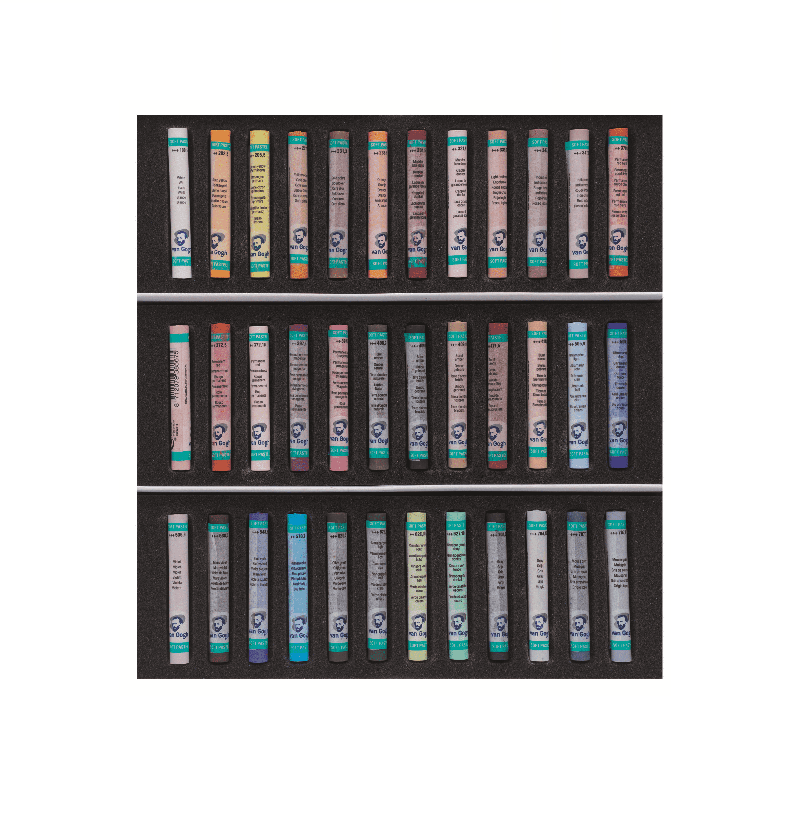 О серии: сухая пастель «Van Gogh» отличается чистыми и яркими цветами. Благодаря идеально подобранному сочетанию каолина (белая глина) и пигмента пастель не рассыпается. Подходит для тонких и детальных прорисовок. Не содержит пигментов на основе свинца, кадмия и кобальта. Представлена поштучно палитрой из 80 цветов и в наборах различной комплектации. Производство: производится в городе Апелдорн голландской компанией «ROYAL TALENS», которую основал Мартин Таленс (Marten Talens) в 1899 году. «ROYAL TALENS» производит все виды художественных красок и является одним из ведущих производителей в своей отрасли. Характеристики: яркая и насыщенная палитра цветов. Высокая светостойкость. Не крошится. Применение: для графических работ. Подходит для художников всех уровней. Хорошо ложится на такие поверхности как пастельная бумага, картон, асфальт и дерево.