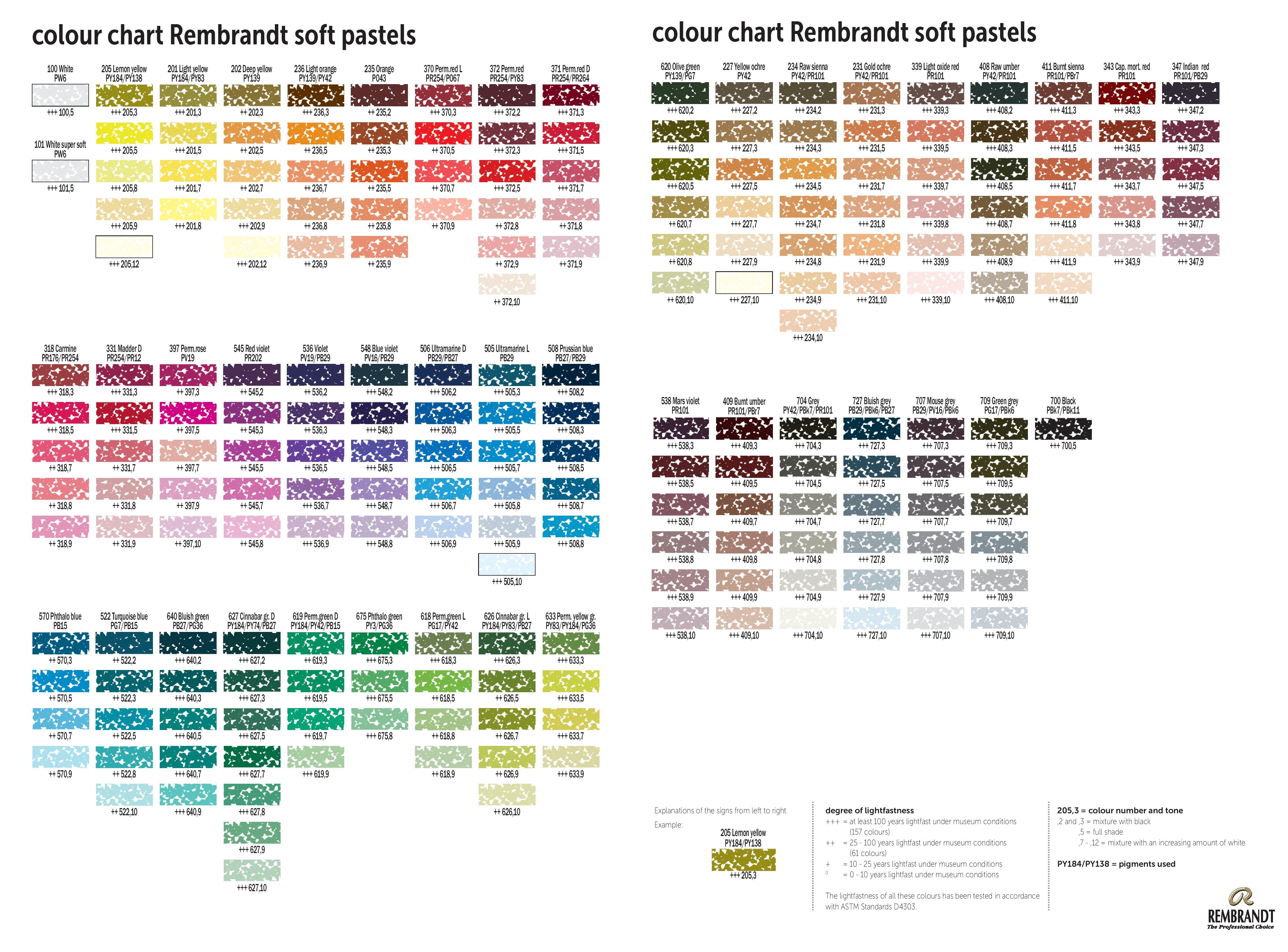 О серии: пастель "Rembrandt" - это серия для профессиональных художников. Изготавливается высококачественных пигментов и каолиновой глины. Максимальная концентрация пигмента способствует оптимальной интенсивности цвета. Большим преимуществом данной серии является отсутствие пигментов на основе тяжелых металлов. Хорошо ложится на шероховатые поверхности. Подходит для прорисовки мелких деталей. Палитра состоит из 218 цветов. Серия представлена в различных наборах. Производство: производится в городе Апелдорн голландской компанией «ROYAL TALENS», которую основал Мартин Таленс (Marten Talens) в 1899 году. «ROYAL TALENS» производит все виды художественных красок и является одним из ведущих производителей в своей отрасли. Характеристика: обладает оптимальной твердостью. Имеет высокую светостойкость. Превосходное сцепление с бумагой. Применение: для графических работ. При работе в смешанных техниках, может быть использована в сочетании с сухими графическими материалами.