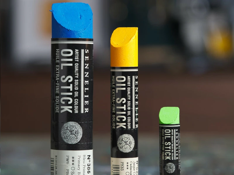 Масляная краска в форме пастели Sennelier "Oil Stick" представляет собой масляную краску в твердой форме. Часть масла заменена нейтральным минеральным воском, что позволяет придать краске форму "палочки". Краски отличаются высоким качеством и содержат высокую концентрацию пигментов, благодаря чему краска устойчива к выгоранию на дневном свету и минимально желтеет со временем. Краску можно наносить неп ично маслу из тюбиков, а при необходимости разбавлять обычным маслом. Перед использованием палочек Sennelier удалите поверхностную пленку. Эта пленка восстановится сама спустя несколько дней неиспользования. Нанесенная краска высыхает в течение 2-5 дней в зависимости от толщины слоев, температуры помещения и влажности воздуха. Палочки могут храниться неограниченно долго без особых условий хранения, однако следует избегать чрезмерного нагрева, поскольку это может повредить продукт. После полного высыхания картины поверхность можно покрыть лаком для масла. Время сушки составляет минимум 6 месяцев. Диаметр: 2,8 см Длина: 15 см