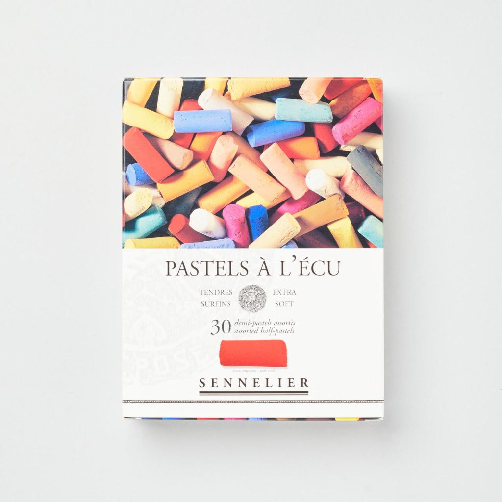 О серии: "A L’ECU" насчитывает 525 оттенков, это самая большая цветовая гамма пастели. Мелок 64 мм в длину и 13 мм диаметром в индивидуальной оболочке. Переход от тона к тону происходит очень плавно. Высокое качество пастели заключается в идеальном балансе между натуральным связующим и чистым пигментом мелкого помола. Пигмент очень интенсивный, не нужно прикладывать усилия, даже слегка коснувшись бумаги получается насыщенный глубокий цвет. Пастель изготавливают вручную, чтобы предотвратить хрупкость пастель не прессуется, а высыхает на открытом воздухе в специальных формах. Комплектация набора: набор включает в себя 30 коротких мелков (1/2 от классического мелка) пастели различных цветовых оттенков. Набор упакован в картонную коробку. Производство: изготавливается французской компанией «Sennelier». Начало ее заложил Гюстав Сеннель? (Gustave Sennelier) в 1887 году, когда стал задумываться о собственном производстве высококачественных красок и выкупил для себя художественный магазин. На сегодняшний день компания производит все виды красок для творчества.