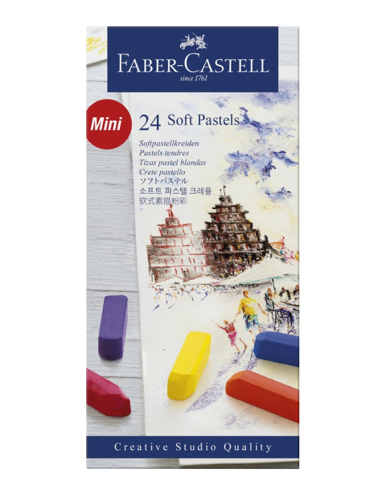 История компании «Faber-Castell» («Фабер-Кастелл») начинается в 1761 году в баварском городе Штайн. Столяр Каспер Фабер создал карандаш, который послужил основанием первой в мире мануфактуры по производству деревянных карандашей. Новая эра в развитии мануфактуры началась в 1839 году, когда во главе предприятия встал 22-летний Лотар фон Фабер. Именно он выпустил первый в мире стандартный карандаш определенной длины, диаметра и жёсткости грифеля, что стало эталоном в канцелярском мире. Сегодня в каталоге компании можно найти более 2000 наименований. «Faber-Castell» занимает лидирующие позиции на международном рынке канцелярской продукции и товаров для творчества. Компания продолжает создавать инновации, сохраняя при этом лучшие традиции в производстве. Пастель сухая «Studio Quality» («Студио Квалити») - очень мягкая и легко растирается пальцами или специальными кисточками. Пастель этой серии иногда называют «Мелки GOFA» («Гофа»). «Studio Quality» можно рисовать практически в любой технике, сочетая её с цветными карандашами и красками. Яркие цвета и отличная кроющая способность помогут передать всю красоту пастельных эффектов. Для закрепления готовой работы рекомендуется использовать фиксатив. Пастель сухая «Studio Quality» выпускается поштучно и в наборах различной комплектации.