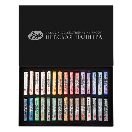 О серии: сухая пастель «Мастер-Класс» изготавливается из мелкотертых пигментов и высококачественного связующего вещества. Пастель обладает оптимальной мягкостью и яркими цветами. Легко растушевывается и смешивается между собой. Хорошо ложится на текстурные поверхности. Для работы рекомендуется использовать специальную бумагу для пастели. Для наибольшей сохранности готовых работ советуем использовать фиксатив. Цвета в наборе: Белая, Неаполитанская телесная, Петербургская розовая, Телесная розовая, Лимонная светлая, Желтая темная, Оранжевая светлая, Киноварь (имитация), Красная средняя, Краплак красный, Фиолетовая светлая, Фиолетовая, Кобальт синий (имитация), Кобальт синий средний (имитация), Ультрамарин, Берлинская лазурь, Морская волна, Зеленая яркая, Зеленая темная, Окись хрома, Окись хрома светлая, Оливковая зеленая, Охра золотистая, Сиена жженая темная, Капут-мортуум, Умбра жженая, Серая светлая, Серая темная, Нейтрально-серая, Черная холодная. Характеристики: мягкая художественная пастель. Почти не крошится, оставляет бархатистый приятный след. Применение: для графических работ. Возможно использование совместно с другими графическими материалами и в смешанных техниках.