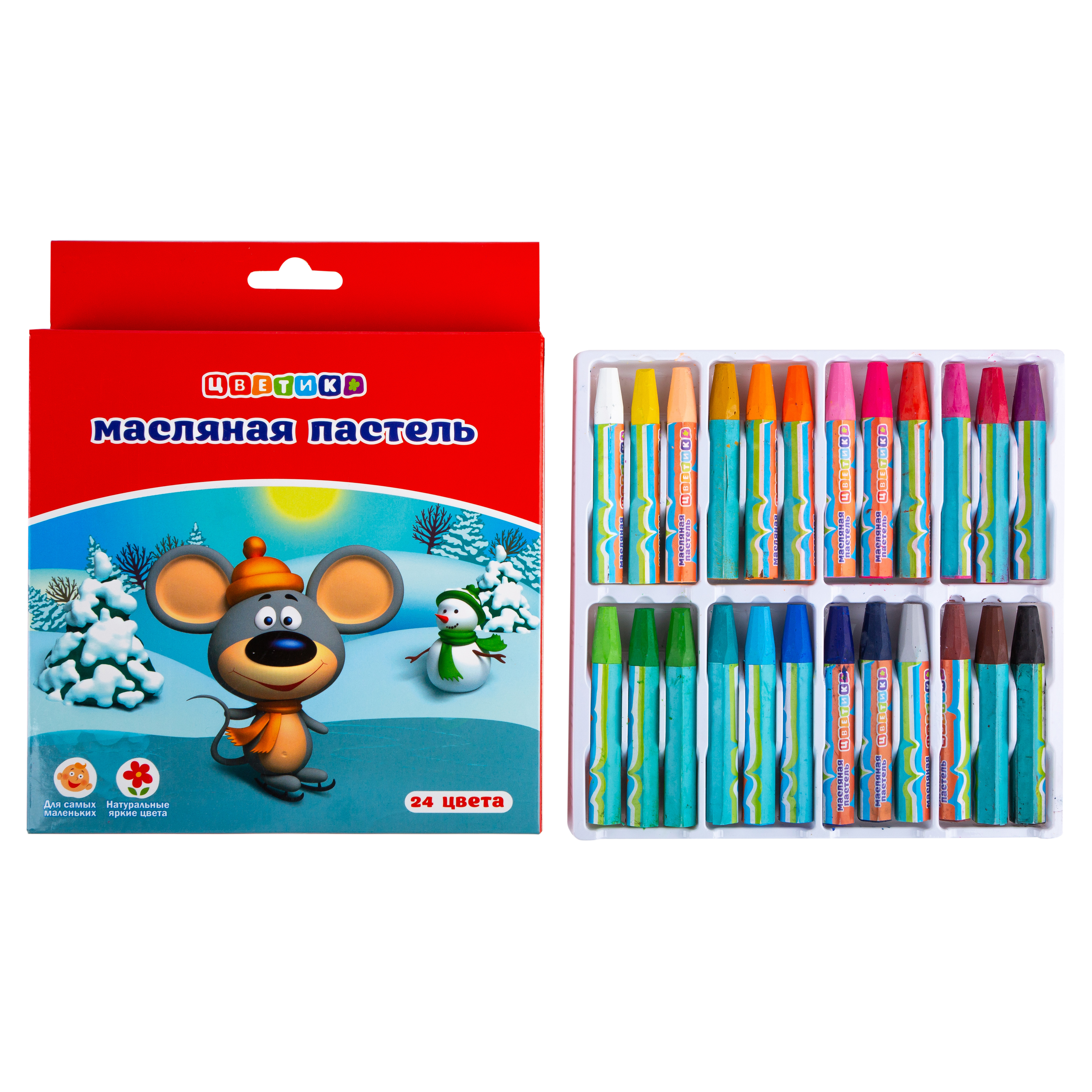 Масляная пастель серии "Цветик" создана специально для творчества детей, отличается яркостью цветов. Наносится одним касанием на бумагу, картон. Не крошится, устойчива к выцветанию. Изготовлена из качественных материалов и не содержит вредных примесей. Идеально подходит для создания различных эффектов: выскабливание, зернистость и т.д. После работы помойте руки теплой водой с мылом. 24 цвета в наборе.