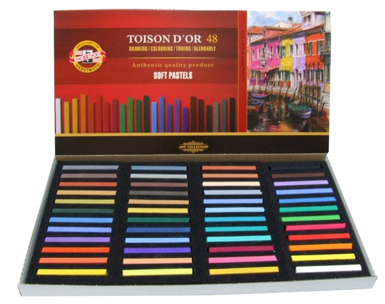 О серии: мягкая сухая пастель «Toison Dor» благодаря тщательно подобранным материалам обладает чистотой цвета и хорошей светостойкостью. Имеет однородную и умеренно мягкую структуру по всему мелку. Оставляет четкий след и не ломается во время использования. Производится в мелках круглой и прямоугольной формы. Пастель «Toison Dor» представлена в наборах различным количеством цветов. Производство: изготавливается компанией KOH-I-NOOR HARDTMUTH, которая является самым известным чешским производителем принадлежностей для рисования, канцелярских товаров и товаров для творчества. Компания получила название в честь алмаза «Кохинор» и была основана в 1790 году. Характеристики: мягкая и однородная структура по всей площади мелка. Не крошится. Обладает высокой светостойкостью. Легко растушевывается. Применение: для графических работ. Возможно использование совместно с другими графическими материалами.