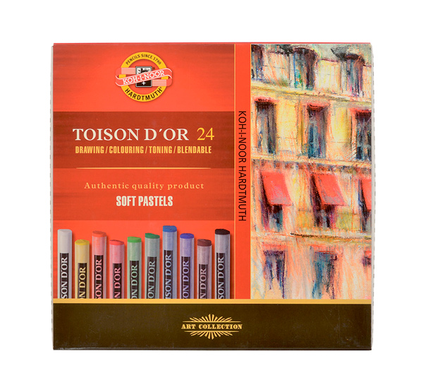 О серии: мягкая сухая пастель «Toison Dor» благодаря тщательно подобранным материалам обладает чистотой цвета и хорошей светостойкостью. Имеет однородную и умеренно мягкую структуру по всему мелку. Оставляет четкий след и не ломается во время использования. Производится в мелках круглой и прямоугольной формы. Пастель «Toison Dor» представлена в наборах различным количеством цветов. Производство: изготавливается компанией KOH-I-NOOR HARDTMUTH, которая является самым известным чешским производителем принадлежностей для рисования, канцелярских товаров и товаров для творчества. Компания получила название в честь алмаза «Кохинор» и была основана в 1790 году. Характеристики: мягкая и однородная структура по всей площади мелка. Не крошится. Обладает высокой светостойкостью. Легко растушевывается. Применение: для графических работ. Возможно использование совместно с другими графическими материалами.