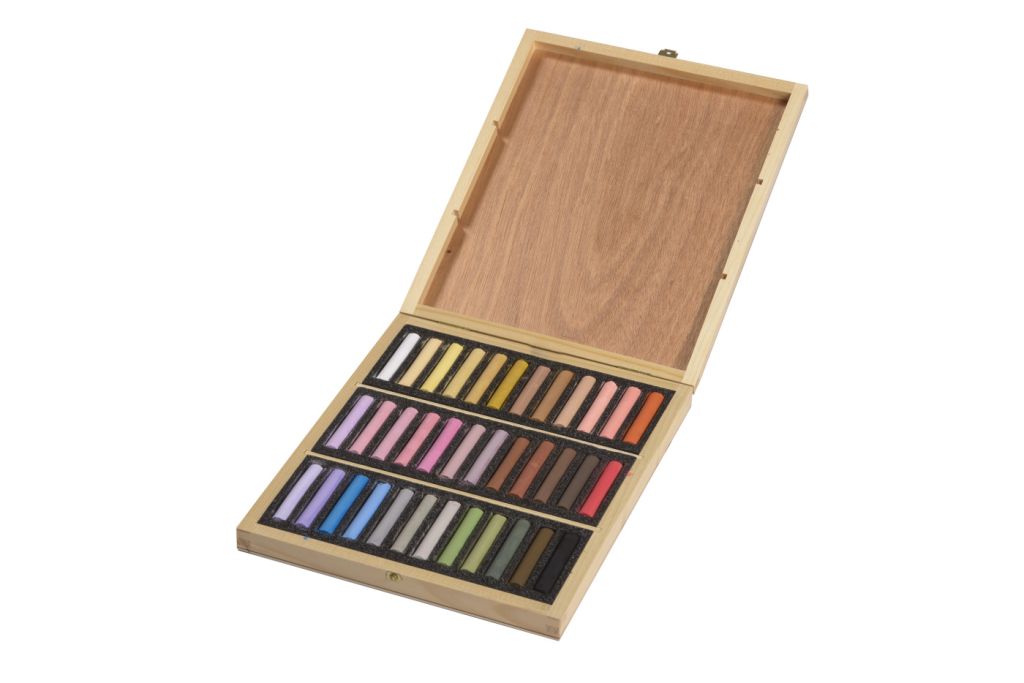 Сухая пастель от бельгийского бренда Blockx изготавливается вручную. Высокое содержание пигментов и высококачественное связующее обеспечивают яркие насыщенные цвета, превосходную укрывистость и мягкую бархатистую текстуру. Пастель может использоваться на бумаге различного типа и других поверхностях, но по-настоящему раскроет все свои лучшие свойства на специальной бумаге для пастели с ярко выраженной фактурой. Благодаря мелкому помолу пастель легко растушевывается, позволяя создавать глубокие многогранные работы, все цвета можно смешивать между собой, а также разбавлять водой. В наборе 36 мелков пастели для создания работ в жанре портрет. Набор упакован в презентабельный деревянный ящик.