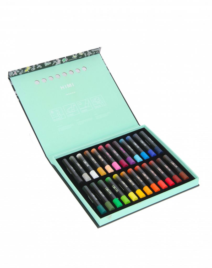 Масляная пастель HIMI обладает мягкой текстурой и яркими насыщенными цветами. Пастель хорошо ложится на поверхности любого типа — бумага, картон, дерево, грунтованный холст. Обладает высокой укрывистостью, благодаря чему может использоваться на тонированной поверхности. Мелки цилиндрической формы обернуты в бумажную рубашку, позволяя сохранять руки чистыми во время работы. Упакована в удобную коробку с подложкой, которая обеспечивает сохранность мелков во время транспортировки.