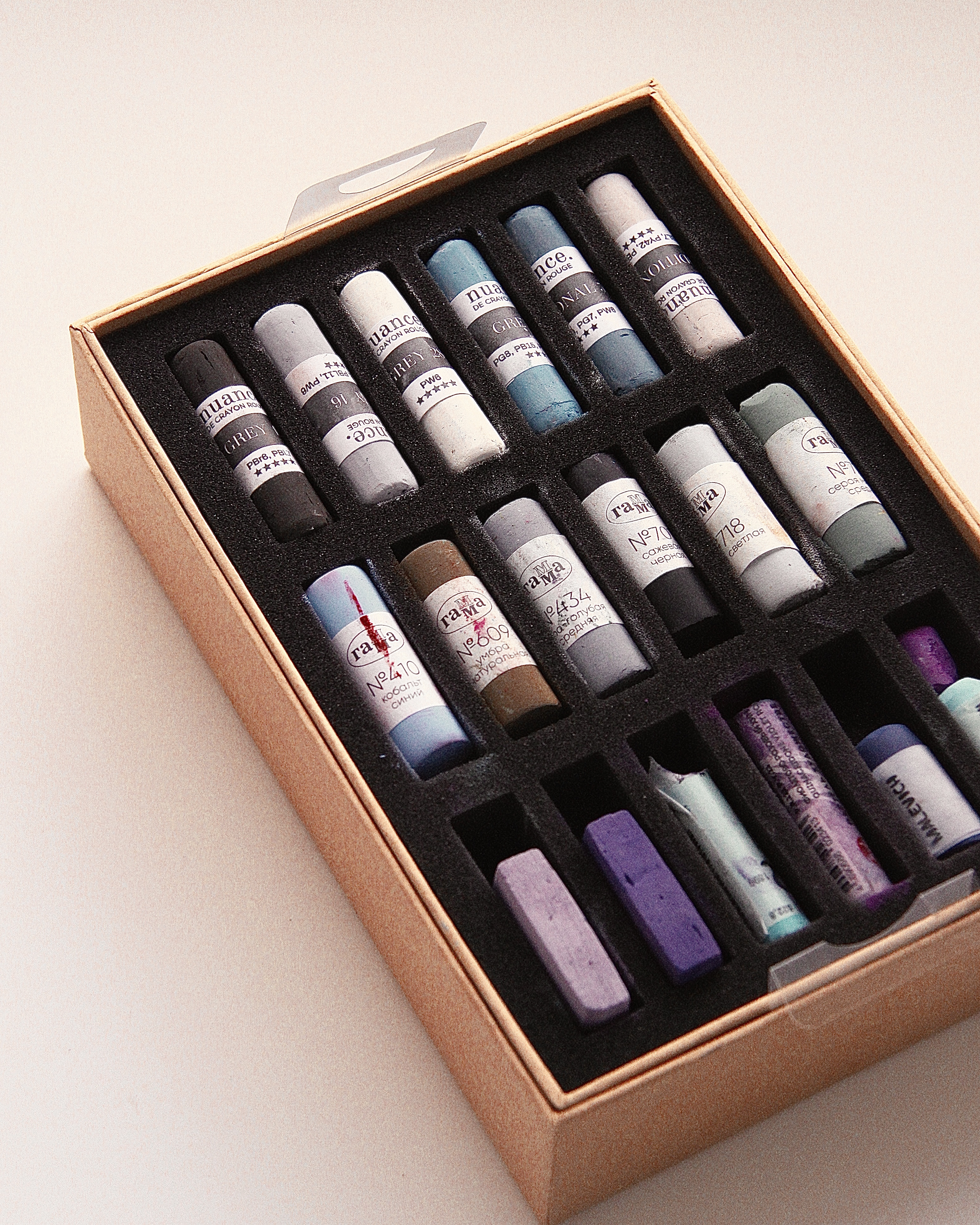 Новый дом для вашей пастели. Систематизируйте коллекцию или соберите свой собственный набор. Внутри коробки две секции ложементов с ячейками, каждая секция проложена поролоном. Для удобного извлечения секции предусмотрены специальные петельки. Корпус изготовлен из толстого и прочного картона. Коробки для пастели nuance. выпускаются вместимостью 36, 72 или 120 мелков. Размер: длина 22 см, ширина 15.2 см, высота 5.5 см.