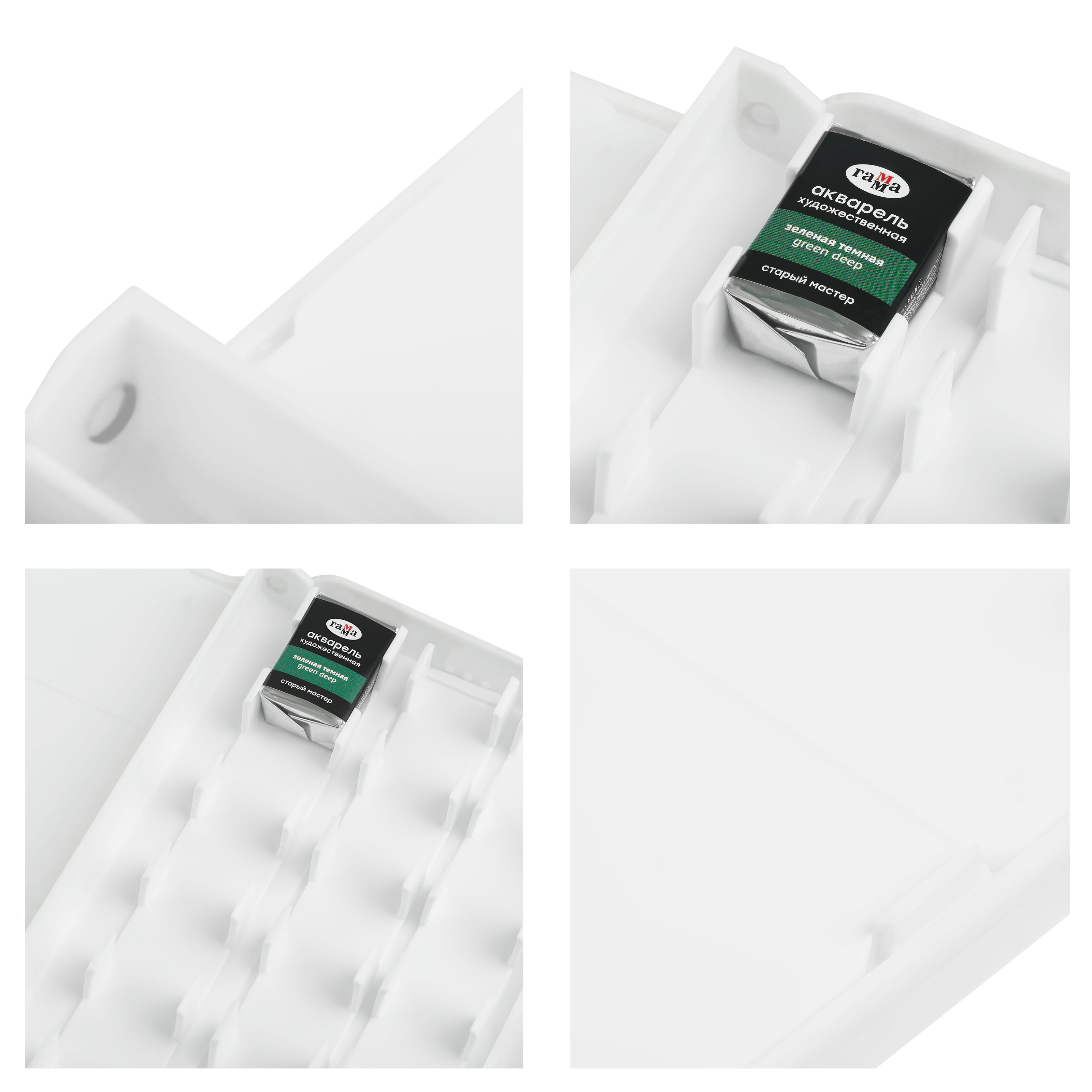 Пластиковые пеналы «ГАММА» для акварельных красок предназначены для удобного хранения и переноски кювет. Подходят для пленэров и путешествий: легкие и компактные, предусмотрено место для хранения кисти, также подходят для обучения и работы в студии и дома. Кюветы надежно фиксируются в съемных вкладышах-держателях. Пеналы подходят для создания индивидуальной палитры цветов и хранения кювет с любимыми цветами. Пенал оснащен дополнительной съемной палитрой для смешивания красок. Пенал и палитра белого цвета ? для чистого смешения оттенков. Пенал на 12 кювет идеально подойдет для художников, использующих небольшую палитру красок.