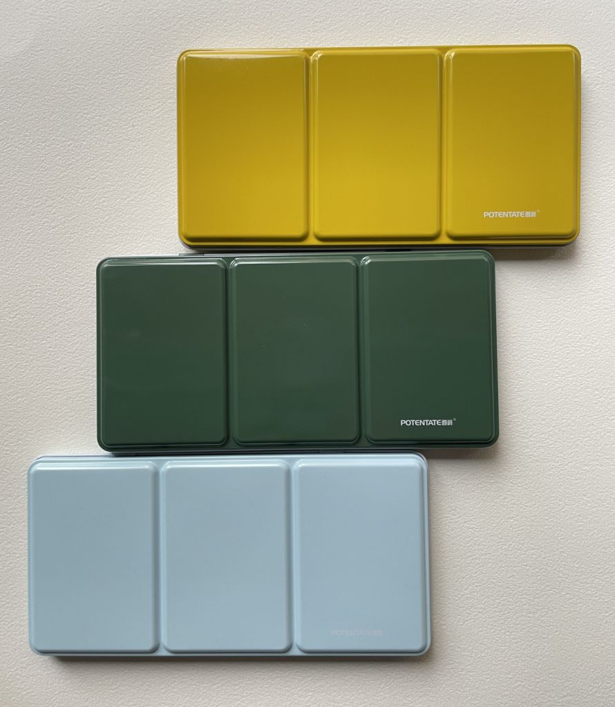 Пеналы для акварели от бренда Potentate выполнены из металла и обладают размером 225х105х16 мм. В такой пенал поместится 40 кювет акварели 2,5 мл., вы можете собрать персональную палитру для работы на пленэре или для работы в контретной тематике. Пенал оснащён крышкой, которую можно использовать в качестве палитры. Внутри вы также найдёте 3 листа плотной акварельной бумаги для выкрасок с разной зернистостью (гладкая, мелкое зерно и крупное зерно). Серия представлена пеналами разных цветов.