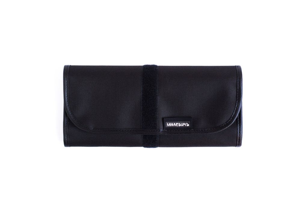 Скрутка выполнена из полиэстера в трех различных цветах. Внутри вшита эластичная резинка удерживающая кисти на своем месте. Предусмотрены ячейки для мастихинов. Специальная вставка из экокожи предохраняет ворс кисти от деформации. Материал износостойкий и не боится воды. Конструкция позволяет зафиксировать скрутку при любой толщине в зависимости от кол-ва кистей внутри. Пенал предназначен для кистей на короткой и средней ручке.