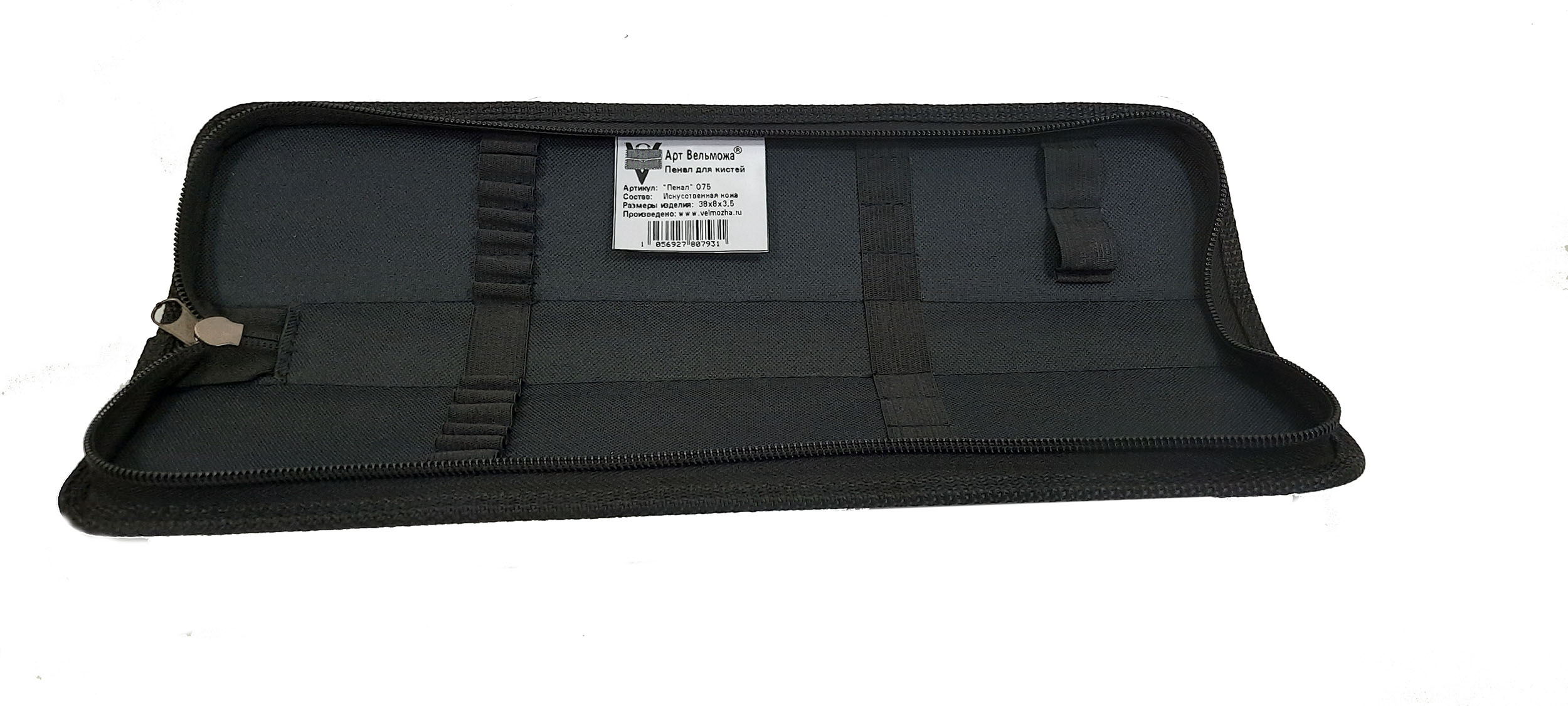Пенал изготовлен из качественного материала. Размер изделия 38*8*3,5 см., жесткая основа, закрывается на "молнию". На внутренней, легко моющейся части пенала, расположены держатели (резинка) для фиксирования принадлежностей и материалов для рисования.