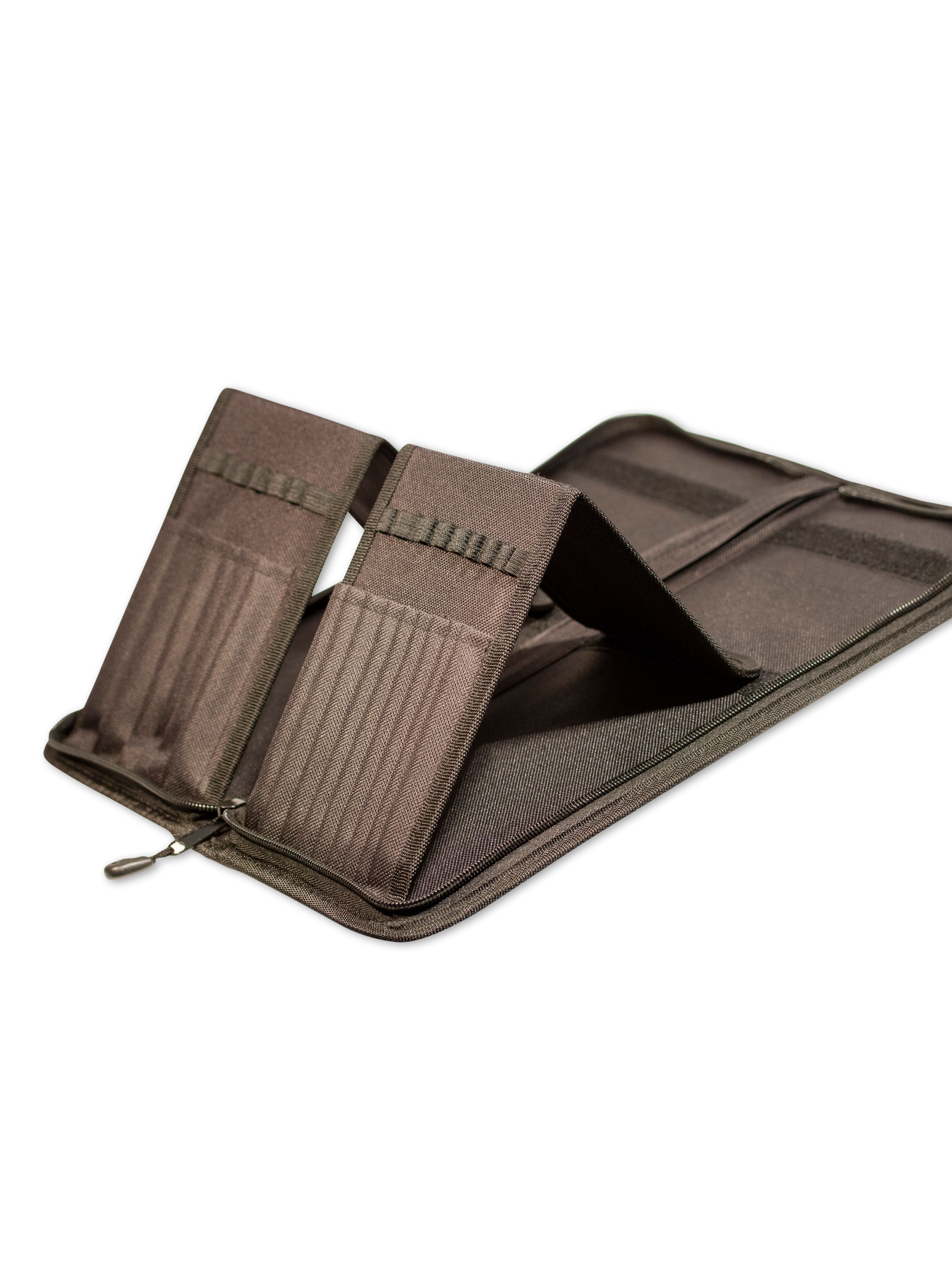 О товаре: компактный и практичный пенал для кистей на длинной ручке. Пенал выполнен из плотного износоустойчивого материала, складная конструкция позволяет разместить кисти длиной до 35 см., сохранив драгоценное пространство для прочих принадлежностей. В пенале предусмотрено 15 отделений для кистей, надежная молния и ручка для переноски. Размер пенала в закрытом виде 14х38 см., в открытом — 30х38 см. Производство: данный товар представлен брендом Pinax. Pinax — мировой бренд товаров, который представлен на российском рынке с начала XXI века. Изначально компания производила только кисти для художественных работ, но затем расширила свое производство и не потеряв качество своей продукции начала производить холсты, мольберты и аксессуары для художников. Сейчас ассортимент включает в себя большое количество наименований.