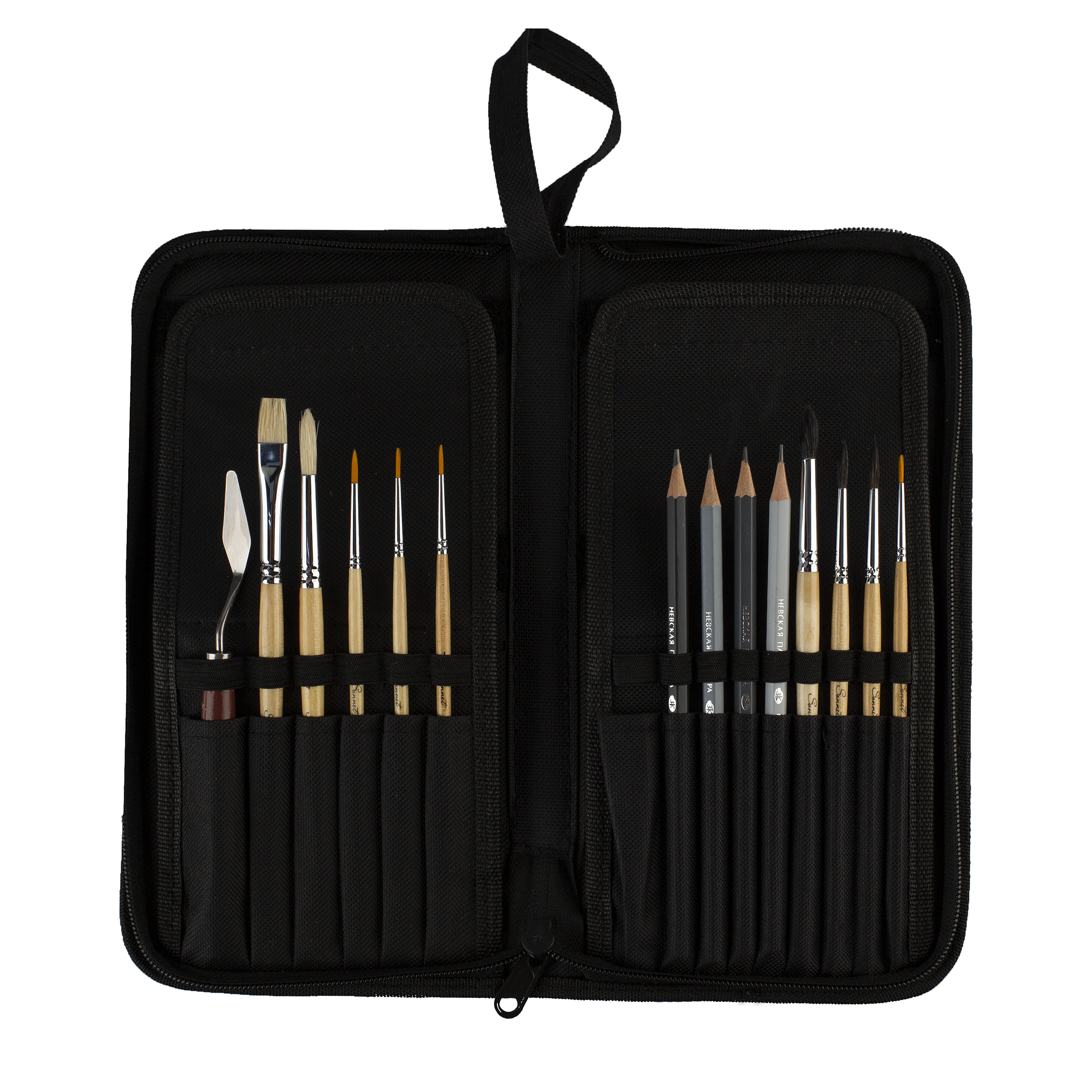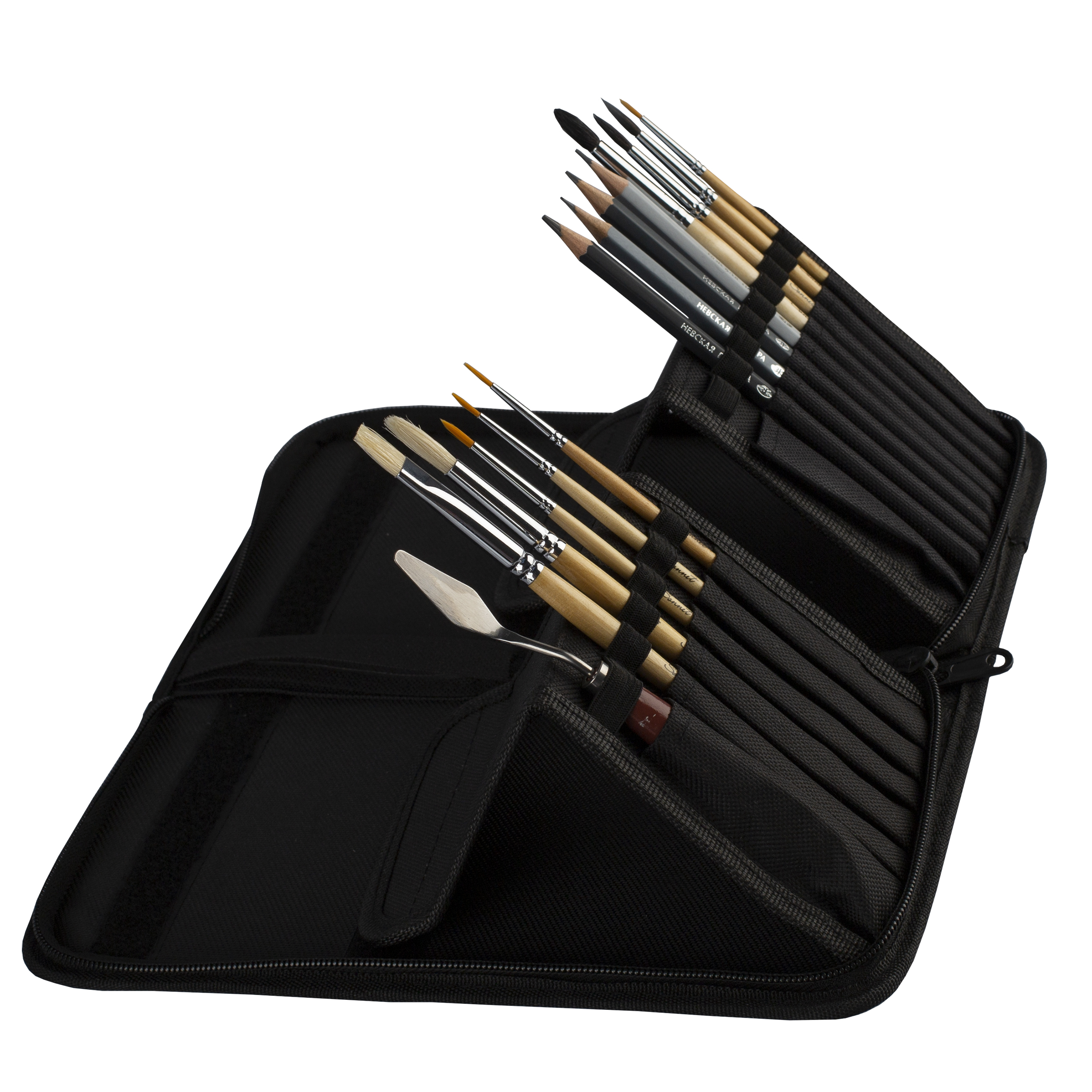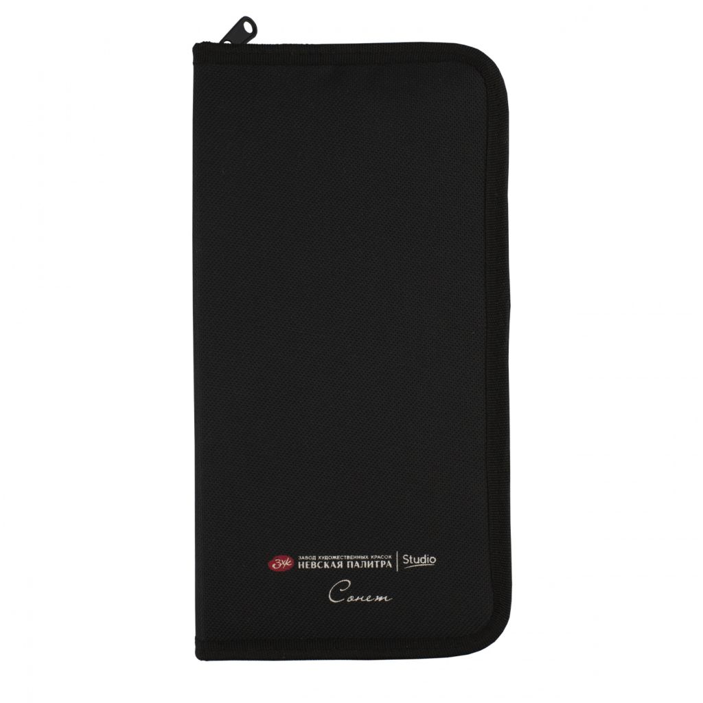 Пенал «Сонет» с 15 отделениями предназначен для хранения кистей на короткой ручке длиной до 24 см. Выполнен из прочной ткани, надежно закрывается на молнию, для удобства переноски предусмотрена ручка-петля. Пенал удобен в работе — 2 внутренних отделения складываются в подставки, помогая сделать быстрый выбор кисти. Размер в закрытом виде 14х27х3,2 см. в открытом — 30х27 см.