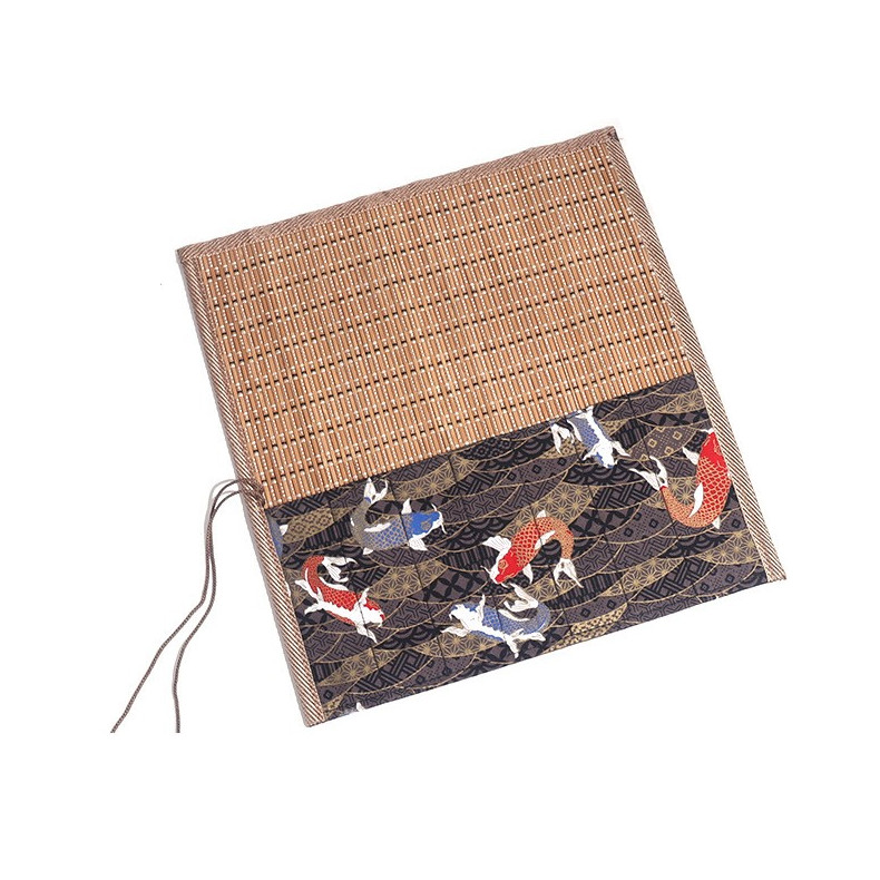 Практичный пенал-скрутка для кистей выполнен из бамбука, благодаря чему обладает легким весом, прочностью и естественной вентиляцией, необходимой для хранения и транспоровтивки кистей. В разложенном виде пенал представляет собой бамбуковый коврик на котором видно все инструменты. В сложенном виде пенал не занимает много места, а шнурок для фиксации позволяет надежно сохранить содержимое пенала в идеальном порядке. Размер в раскрытом виде 33.5х36 см., количество кармашков для кистей - 7. Поставляется без наполнения.