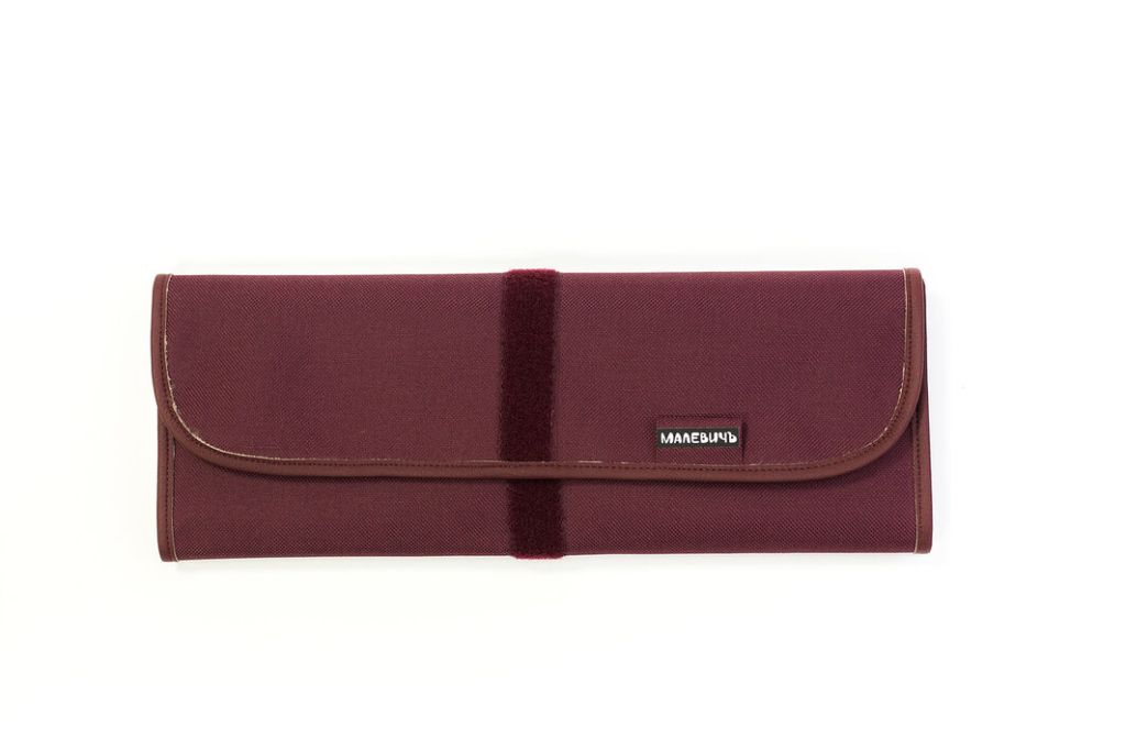 Скрутка выполнена из полиэстера в трех различных цветах. Внутри вшита эластичная резинка удерживающая кисти на своем месте. Специальная вставка из экокожи предохраняет ворс кисти от деформации. Материал износостойкий и не боится воды. Конструкция позволяет зафиксировать скрутку при любой толщине в зависимости от кол-ва кистей внутри. Пенал предназначен для кистей на ручке любой длины.