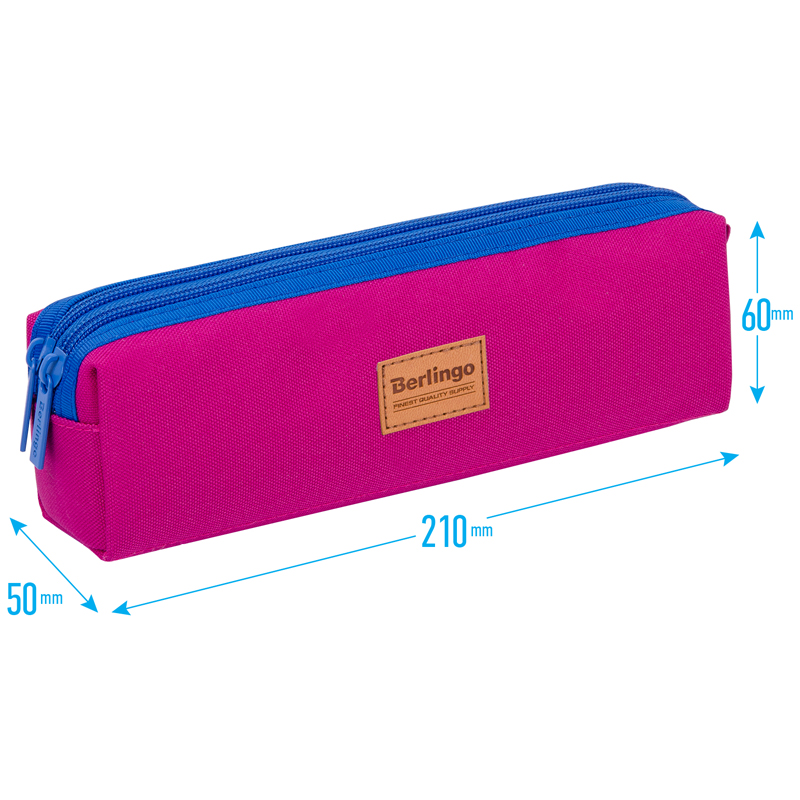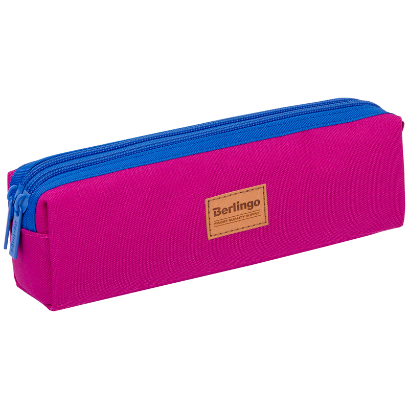 Пенал мягкий 2 отделения Berlingo "Electric pink" 210*60*50 мм, полиэстер, цветные молнии