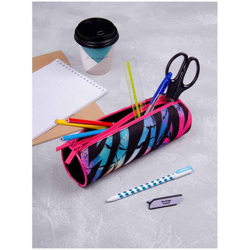 Пенал-тубус школьный мягкий Berlingo Zig zag размера 210*70 мм имеет два отделения, между которыми есть тканевая перегородка. Материал лицевой и внутренней поверхности – полиэстер. Диаметр пенала – 7 см. Поставляется без наполнения.