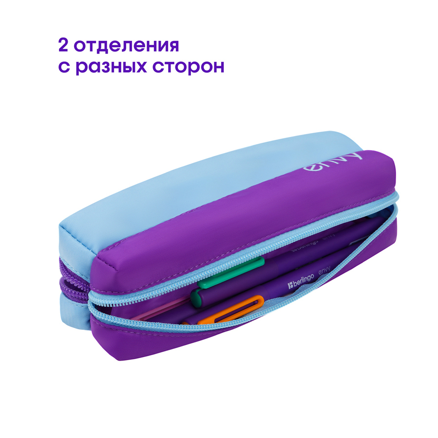 Пенал-косметичка Berlingo Envy станет отличным помощником в учёбе. Модель размера 205*50*55 мм имеет два отделения, закрывающиеся на молнию. Пенал выполнен из полиэстера. Упакован в индивидуальный пакет. Поставляется без наполнения.