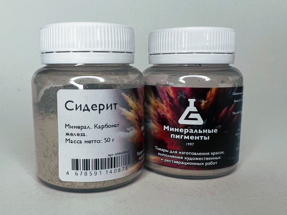Сферосидерит издавна используют в Крыму для приготовления краски. Неподалеку от Феодосии разведаны месторождения этого сырья. А живописцам хорошо знакома краска под названием феодосийская коричневая. В прошлом художники Крыма, в частности, И. К. Айвазовский, эту краску готовили сами. Традиция имеет, очевидно, глубокие корни. Местные жители издавна использовали для хозяйственных нужд самоцельную краску из собранных конкреций. В наше время месторождения периодически разрабатывает Ленинградский завод художественных красок. Пигменты из сидерита используют также для окраски стекла, фарфора, керамики, линолеума, в кожевенной промышленности, при производстве цветных карандашей. Сферосидерит — желто-коричневый до ржавого и красно-бурого в иаруяшых слоях. Ядро темно-серое до почти черного (особенно вблизи контакта с магматическими породами), серо-зеленое, желто-бурое. •Химическое описание: минерал. •Химическая формула: FeCO3 •Светостойкость – 8 •Устойчивость к щелочам: 5 •Устойчивость извести: 5 •Устойчивость к кислоте: 3 •ColorIndex нет данных •Пригодность Акрил, Фреска, Керамика, Масло, Темпера, Акварель / Гуашь, Силикатное связующее, Цемент / Штукатурка •Цвет зеленовато-серый •Лессировочный •Форма порошок • Укрывистость высокая. Пигменты предназначены для самостоятельного изготовления художественных красок. Их можно использовать с разнообразными связующими и при работе в различных техниках живописи. Натуральные пигменты незаменимы в реставрационных работах произведений древних мастеров, не знавших достижений современной химии.