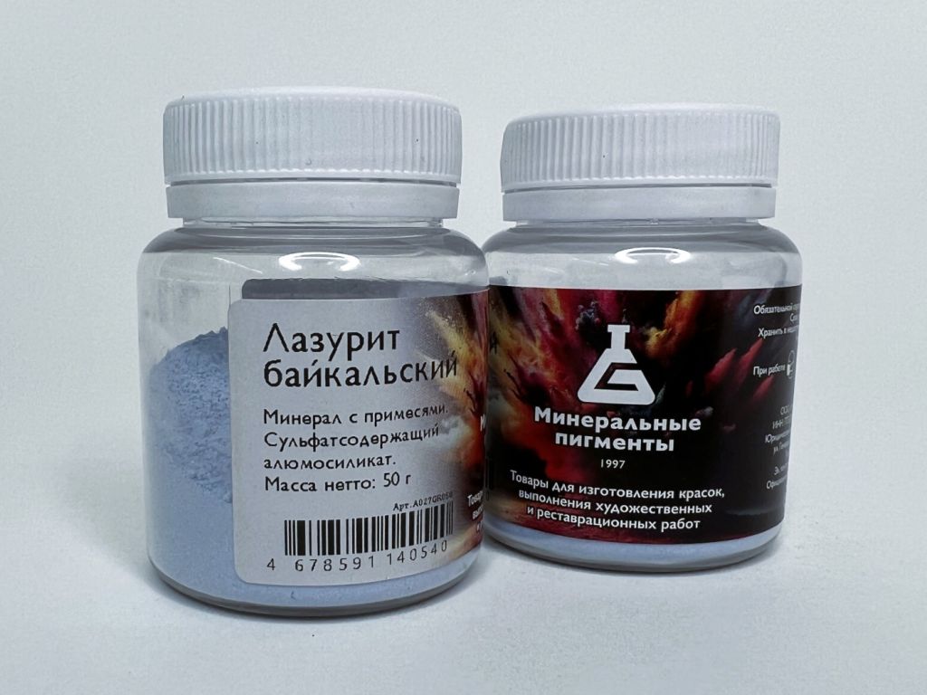 Натуральный ультрамарин. Ляпис-лазурь. Природный пигмент от голубого до темно-синего или сиреневого цвета. Представляет собой сложный магнезиальный силикат группы содалита, описываемый формулой Na6Ca2(Al,Si04)(Si04)S. По существующим представлениям окраска лазурита связана с влиянием комплекса Na-S-O. В чистом лазурите содержится в %: SiO2 - 35,8; AI2O3 - 34,8; Na2O3- 3,2. Чем больше анионов S3', тем гуще синий цвет лазурита. В ярко-синей его разновидности содержание серы достигает 0,7%. Горная порода, содержащая, кроме лазурита, кальцит СаСОз, пирит FeS2 и другие минералы, носит название «ляпис-лазурь». Современное название «лазурит» появилось в XVIII веке. Самые ранние письменные свидетельства об использовании этого минерала для живописи содержатся в трактате Теофраста (IV - III вв. до н.э.) и в «Натуральной истории» Плиния (I в. н.э.). При раскопках гробницы египетского фараона Рамзеса II (XIII век до н.э.) была обнаружена роспись лазуритом. В Европу минерал привозили из Бадахшана, расположенного на территории современного Афганистана. Отсюда происхождение слова «ультрамарин» - в переводе с арабского - «из-за моря». Во фресках Спасо-Преображенского Мирожского монастыря (XII в., Псковская область) византийские мастера использовали бадашханский лазурит. Характеристики: •Химическая формула: Na6Ca2(AlSiO4)6(SO4,S,Cl)2 •Химическое описание: Минерал. Каркасный силикат группы содалита. •Светостойкость - 8 •Лессировочный •ColorIndex нет данных •Пригодность Акрил, Фреска, Масло, Темпера, Акварель / Гуашь •Цвет серовато-синий •Форма порошок • Устойчивость к щелочам:5 •Устойчивость извести:5 •Устойчивость к кислоте:5 • Укрывистость средняя. Пигменты предназначены для самостоятельного изготовления художественных красок. Их можно использовать с разнообразными связующими и при работе в различных техниках живописи.
