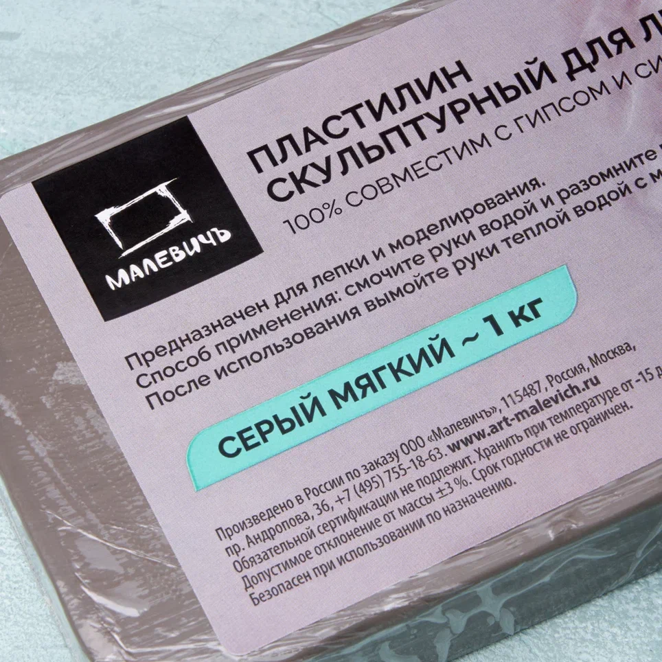 Большой мягкий скульптурный пластилин Малевичъ предназначен как для профессионального моделирования скульптур и макетов, так и для лепки в свое удовольствие и творчества с детьми. На 100% совместим с гипсом и силиконом. Устойчив к перепаду температур, хорошо держит заданную форму, не липнет к рукам, не крошится и легко смывается. Стойкий к высыханию, можно использовать многократно. Не токсичен, экологичный, без содержания серы и запаха. Срок годности не ограничен. Смочите руки перед работой и тщательно разомните массу. Если вам тяжело работать с пластилином, предварительно разогрейте его в теплой воде, отрезав кусок нужного размера. Стоит помнить: от слишком сильного и многократного нагрева любой скульптурный пластилин может потерять эластичность. После использования вымойте руки и поверхность водой с мылом.