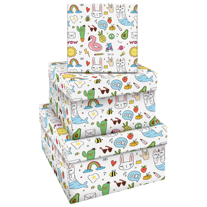 Подарочные коробки MESHU – лучшее решение, чтобы порадовать ваших близких и создать праздничное настроение. Набор состоит из трёх квадратных коробок размеров 19,5*19,5*11 см, 17,5*17,5*10 см, 15,5*15,5*9 см. Изделия выполнены из твёрдого картона, покрытого мелованной бумагой с дизайнерским рисунком. Подарок, преподнесенный в яркой и оригинальной упаковке, непременно станет самым запоминающимся.