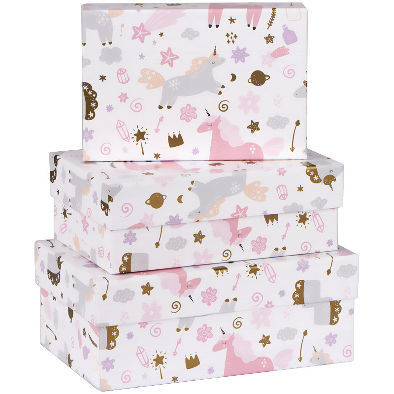 Подарочная коробка Meshu - лучшее решение, чтобы порадовать ваших близких и создать праздничное настроение. Подарок, преподнесенный в яркой и оригинальной упаковке, - самый запоминающийся. Коробки изготовлены из плотного переплетного картона, покрытого мелованной бумагой с дизайнерским рисунком. Набор состоит из трех коробок разных размеров.