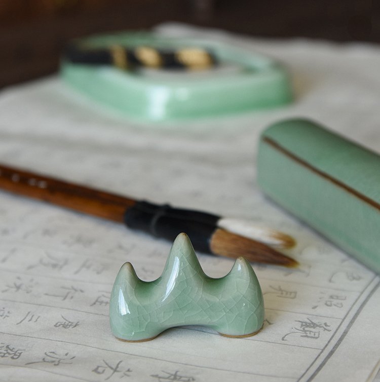 Фарфоровая подставка для кистей в аутентичном дизайне станет не только полезным аксессуаром, но и настоящим украшением вашего рабочего стола и ярким пополнением вашей коллекции китайских инструментов для живописи и каллиграфии. Длина подставки 5.5 см, высота 3.6 см.