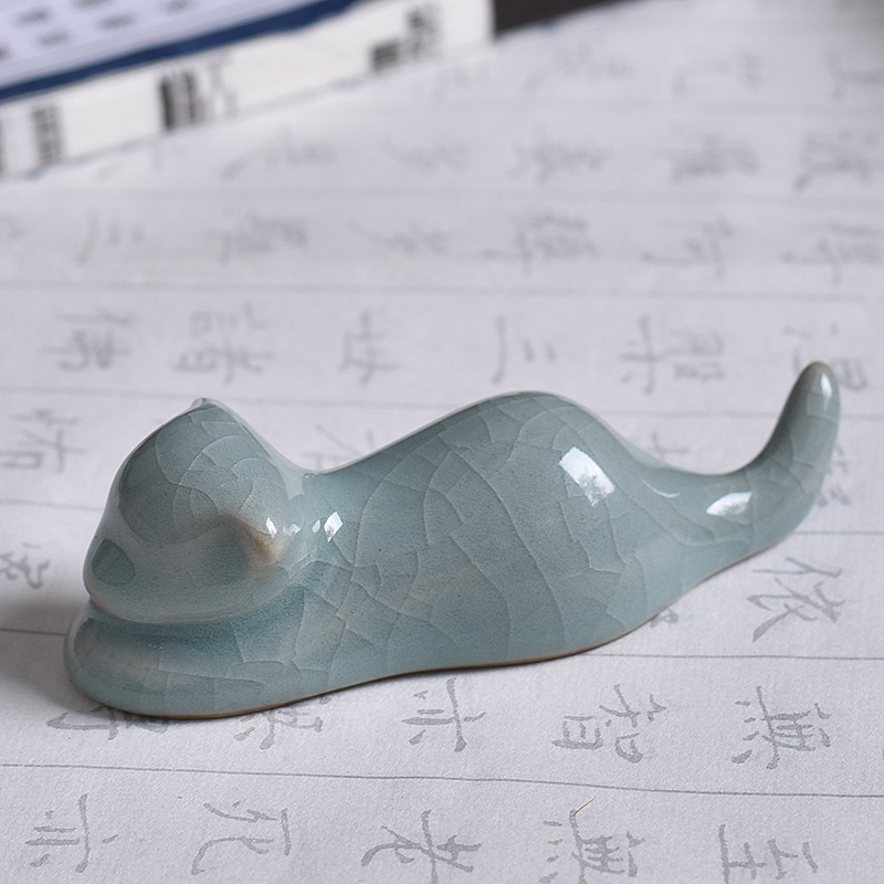 Фарфоровая подставка для кистей в аутентичном дизайне в форме котика станет не только полезным аксессуаром, но и настоящим украшением вашего рабочего стола и ярким пополнением вашей коллекции китайских инструментов для живописи и каллиграфии. Длина подставки 10.2 см, высота 3см. Покрыта эмалью с эффектом кракле.