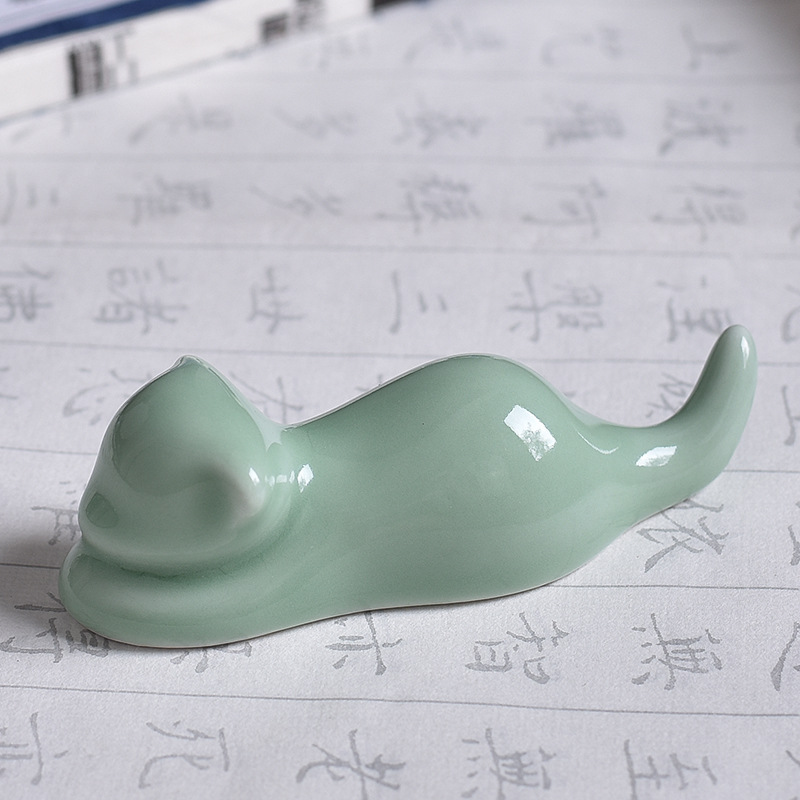 Фарфоровая подставка для кистей в аутентичном дизайне в форме котика станет не только полезным аксессуаром, но и настоящим украшением вашего рабочего стола и ярким пополнением вашей коллекции китайских инструментов для живописи и каллиграфии. Длина подставки 10.2 см, высота 3 см.