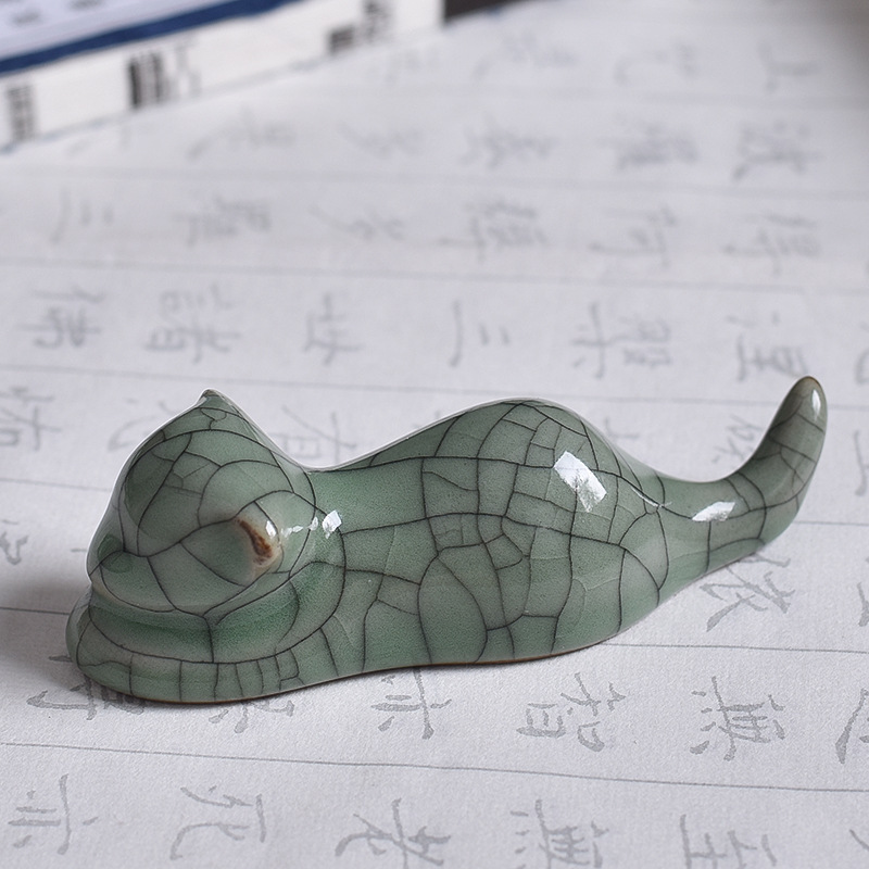 Фарфоровая подставка для кистей в аутентичном дизайне в форме котика станет не только полезным аксессуаром, но и настоящим украшением вашего рабочего стола и ярким пополнением вашей коллекции китайских инструментов для живописи и каллиграфии. Длина подставки 10.2 см, высота 3.3 см. Покрыта эмалью с эффектом кракле.